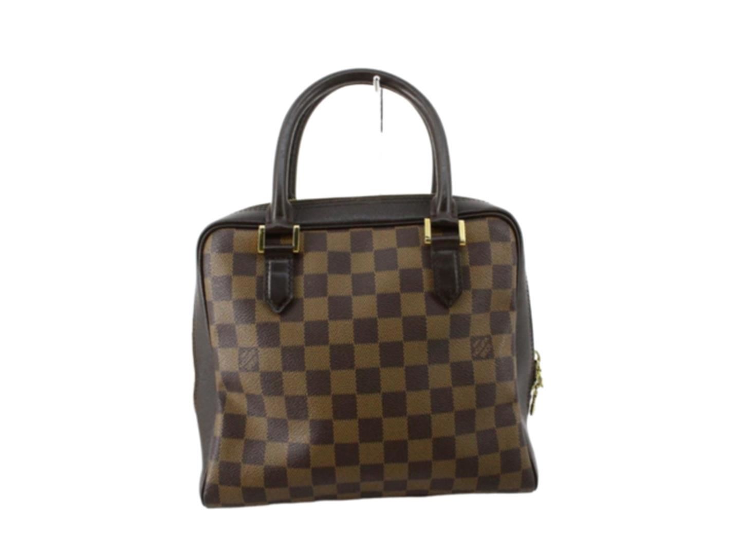 Louis Vuitton Damier Ebene Canvas Leather Brera Handbag. All available information is listed in the description and shown in the photos. Brown Damier Ebene coated canvas Louis Vuitton Brera handbag with gold-tone hardware, dark brown Taiga leather trim, dual rolled top handles, red Alcantara lining, single pocket with zip closure at interior wall and zip closure at top. . 9.5"x4"x8"xBag Drop:4.25"/24.1cmx10.1cmx20.3cmxBag Drop:10.8cm