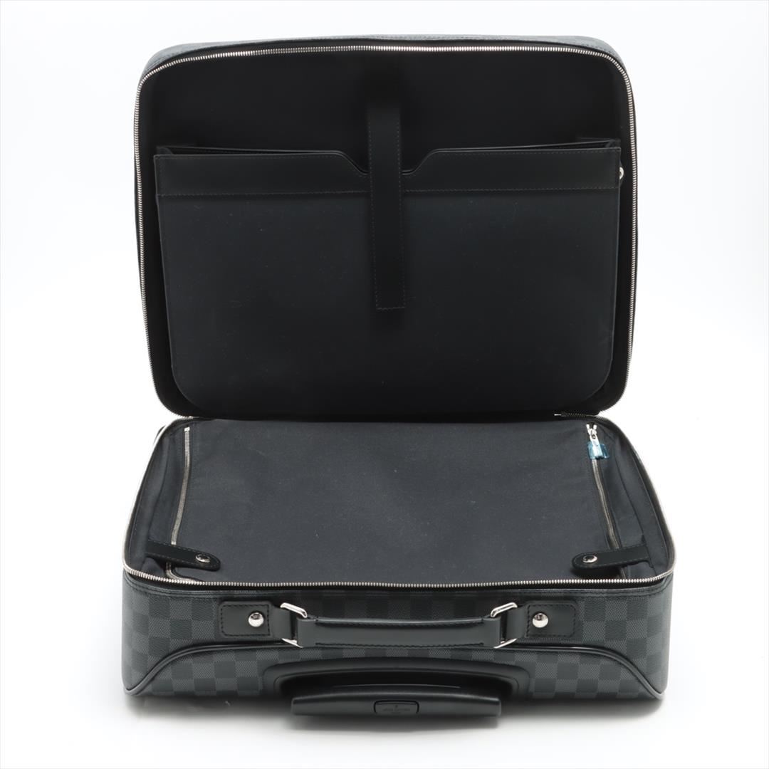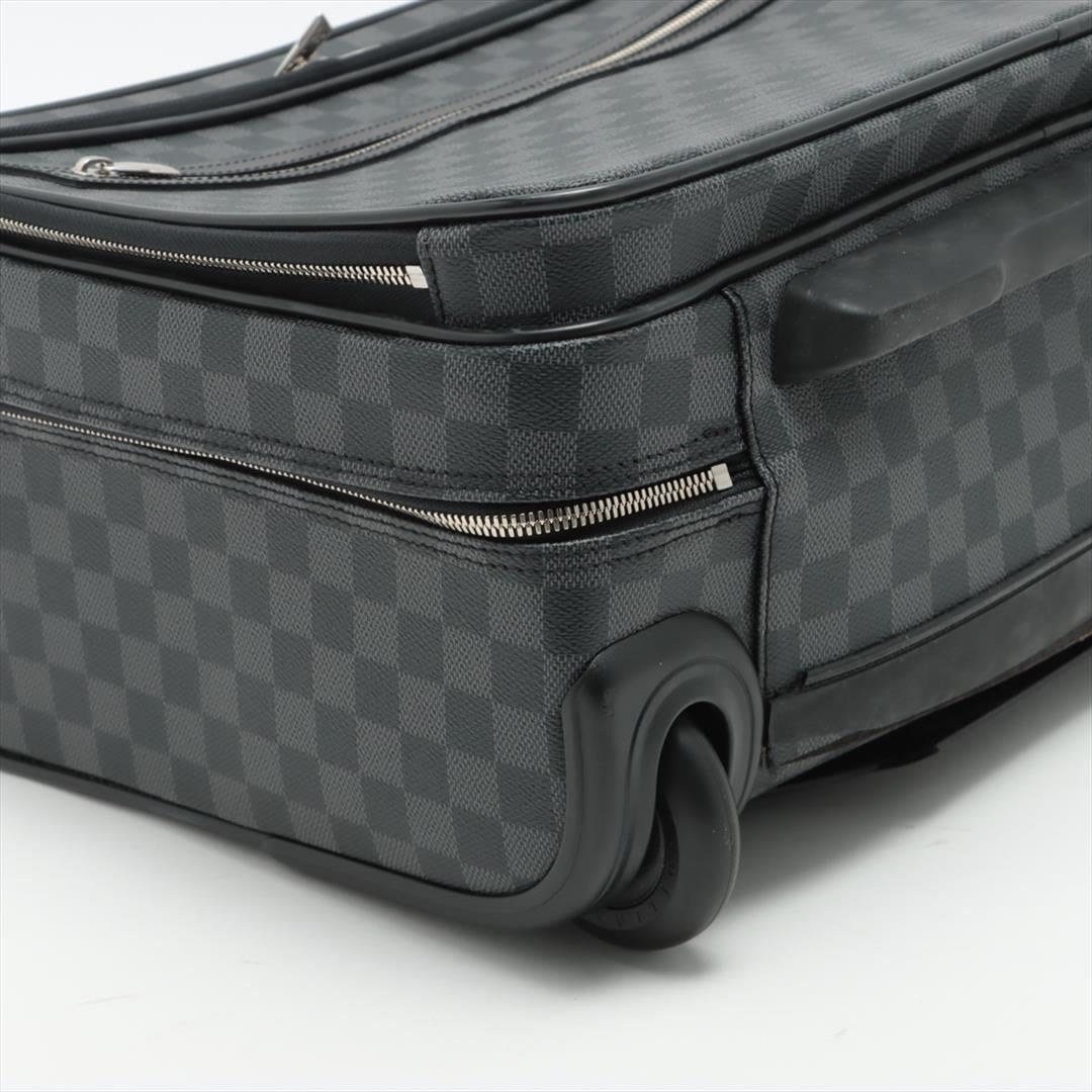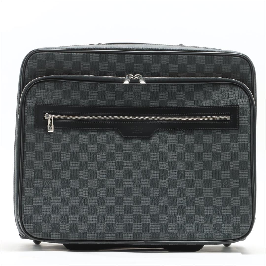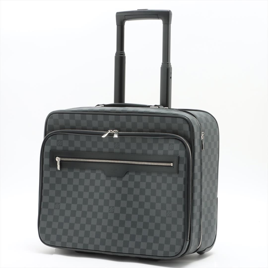 Louis Vuitton Damier Graphite Canvas Leather Pilot Case Travel Bag. All available information is listed in the description and shown in the photos. Men's graphite Damier coated canvas Louis Vuitton Pilot Case with silver-tone hardware, leather trim, retractable handle, top handle, two wheels, two zip pockets at front face, canvas lining featuring multiple compartments at interior and zip around closure at exterior. Height: 14" Width: 17" Depth: 7.5" Retractable Handle Drop: 15.5" Handle Drop: 1.5"