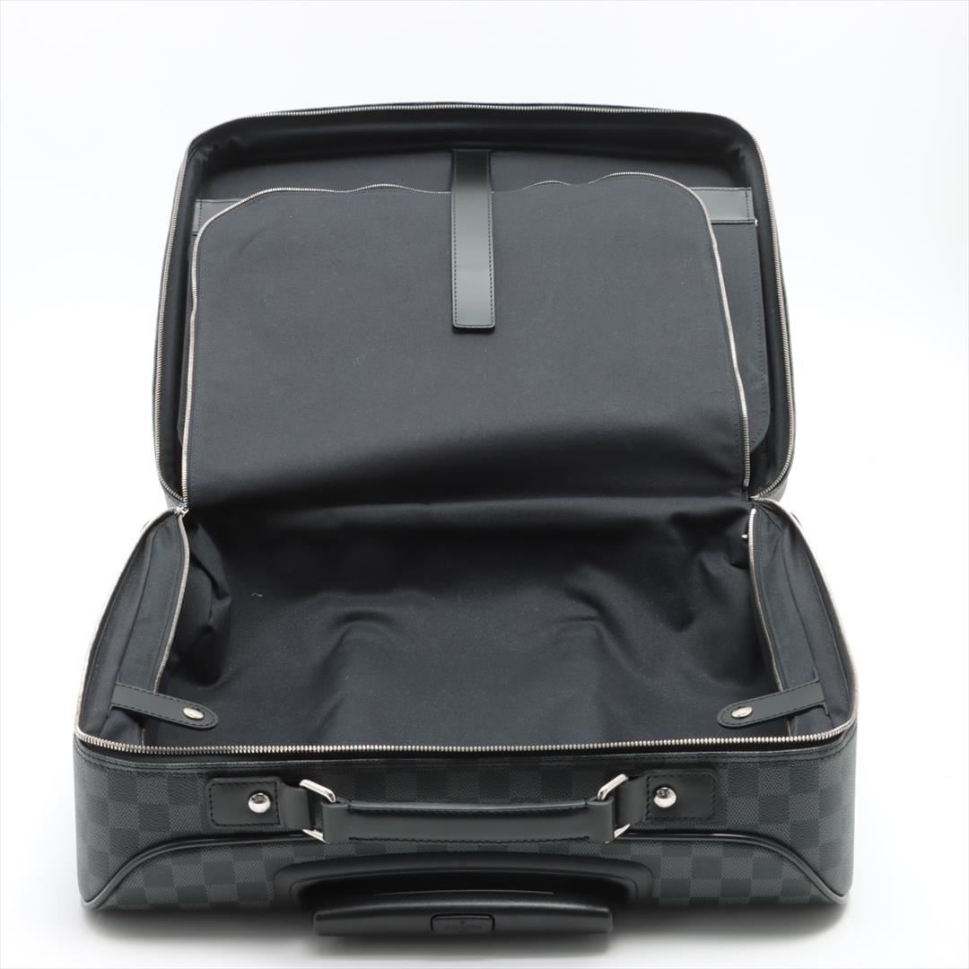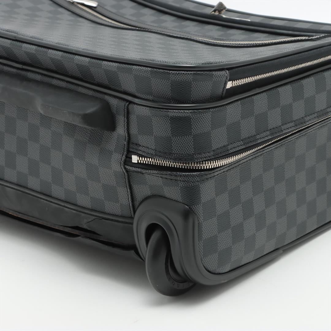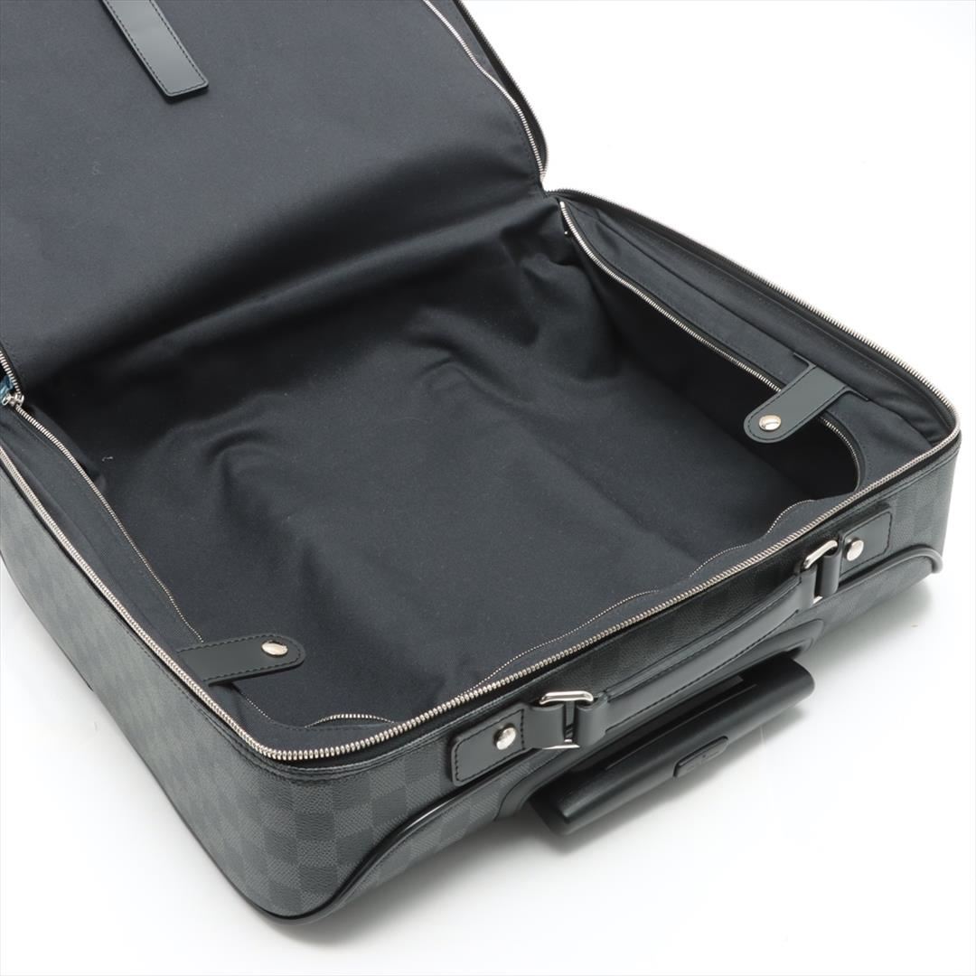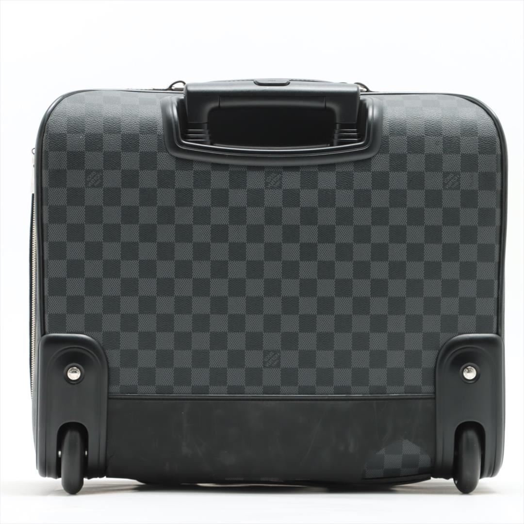 Louis Vuitton Damier Graphite Canvas Leather Pilot Case Travel Bag. All available information is listed in the description and shown in the photos. Men's graphite Damier coated canvas Louis Vuitton Pilot Case with silver-tone hardware, leather trim, retractable handle, top handle, two wheels, two zip pockets at front face, canvas lining featuring multiple compartments at interior and zip around closure at exterior. Height: 14" Width: 17" Depth: 7.5" Retractable Handle Drop: 15.5" Handle Drop: 1.5"