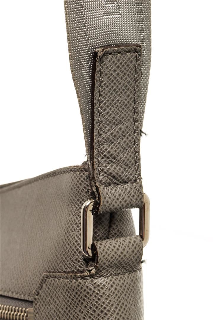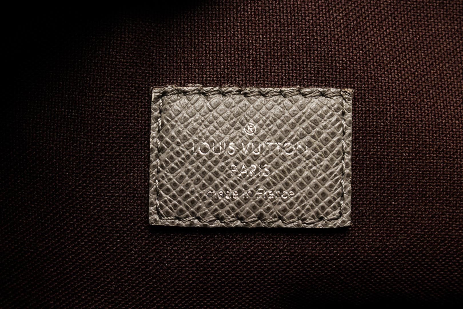 One Louis Vuitton Gray Taiga Leather Sasha Crossbody Bag. Item is sold AS-IS. All available information is listed in the description and shown in the photo. Louis Vuitton Gray Taiga Leather Sasha Crossbody Bag with taiga leather, silver-tone hardware, front zip and rear flat pockets, two interior flat pockets, adjustable fabric strap, zip top closure.