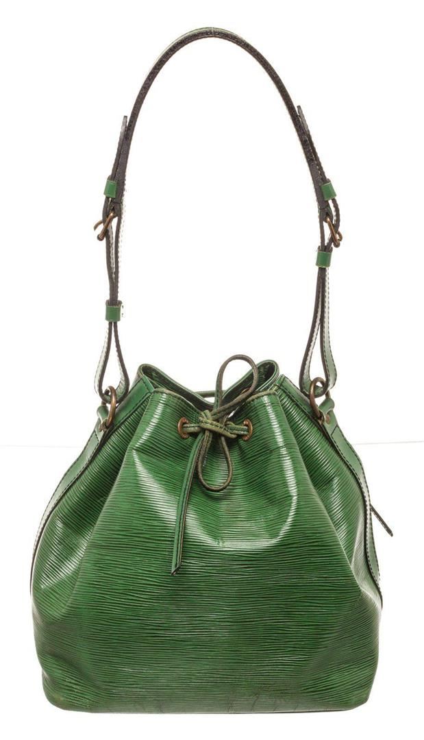 Louis Vuitton Green Epi leather Noe GM Bucket Bag with material Epi Leather, gold-tone hardware, shoulder adjustable strap and drawstring closure.
