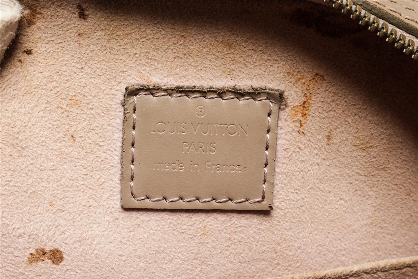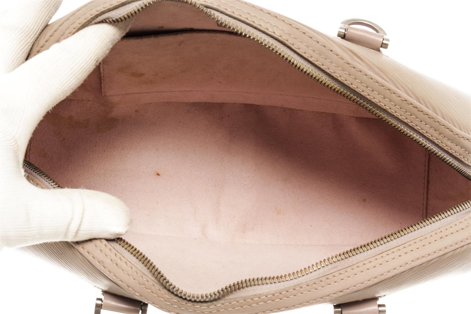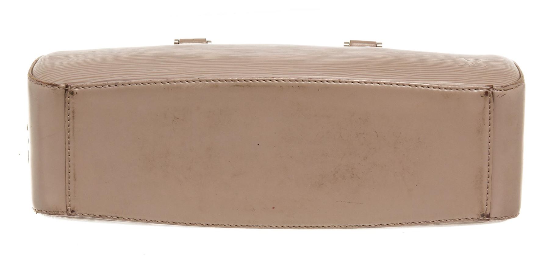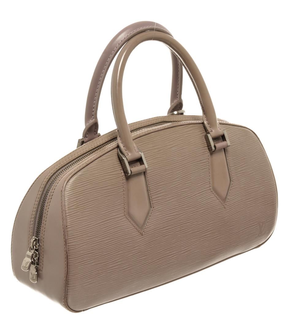 One Louis Vuitton Grey Jasmine Epi Leather Bag. Item is sold AS-IS. All available information is listed in the description and shown in the photo. Louis Vuitton Grey Jasmine Epi Leather Bag with top handle, grey suede lining, slip interior pocket, silver hardware, zipper closure.