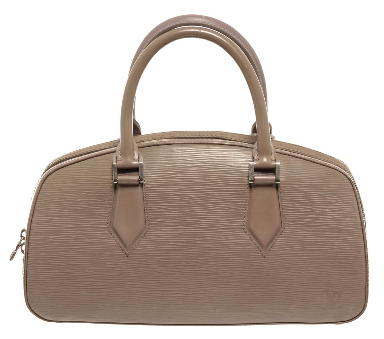 One Louis Vuitton Grey Jasmine Epi Leather Bag. Item is sold AS-IS. All available information is listed in the description and shown in the photo. Louis Vuitton Grey Jasmine Epi Leather Bag with top handle, grey suede lining, slip interior pocket, silver hardware, zipper closure.