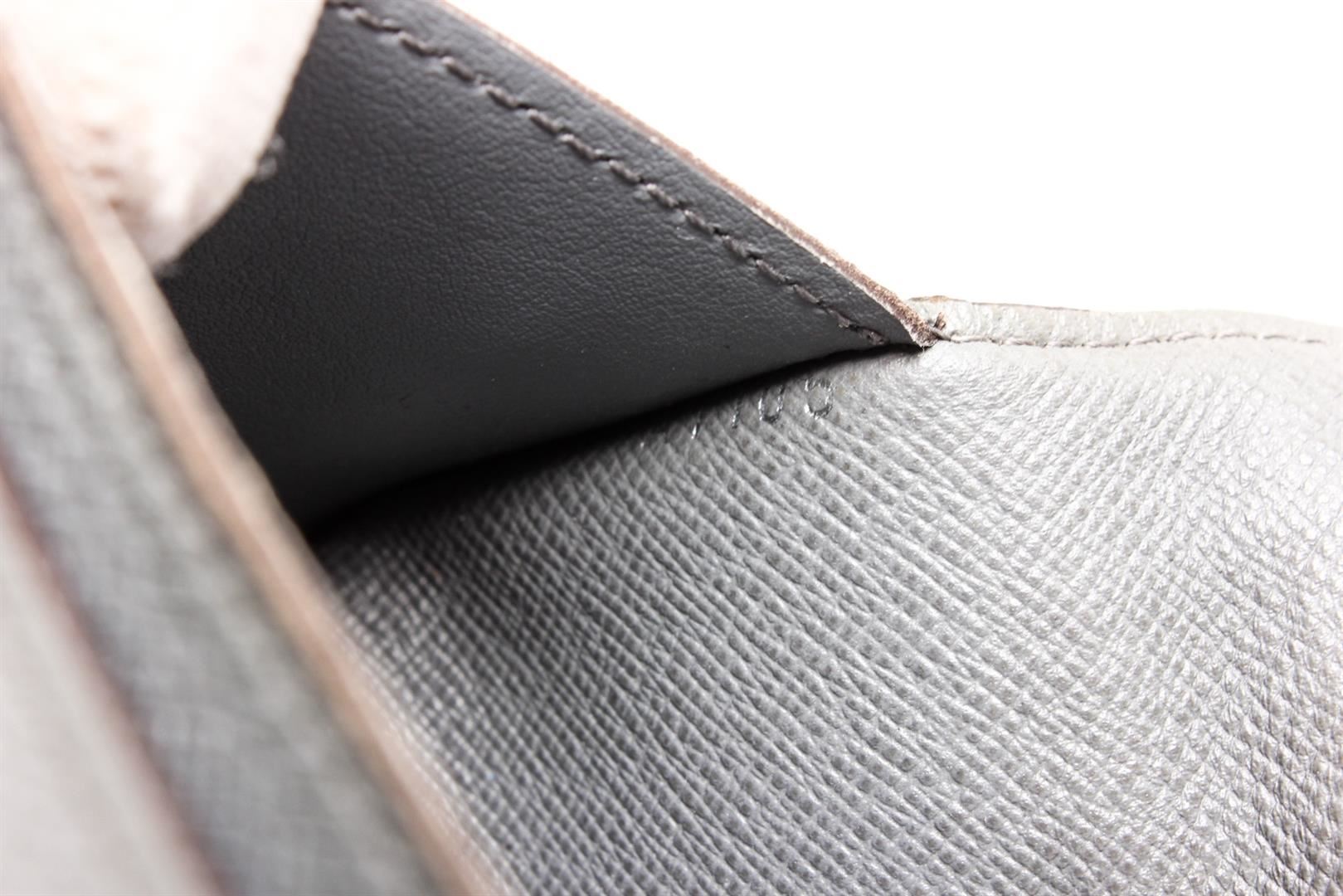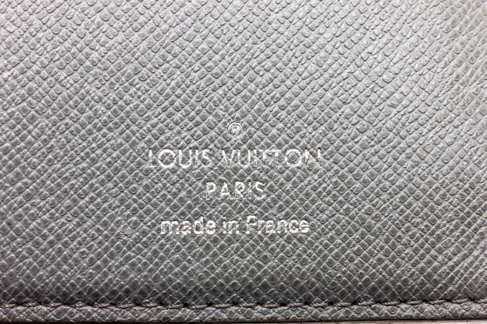 Louis Vuitton grey Taiga Leather long bifold card wallet with embossed logo at front, grey leather interior lining, sixteen card slots, four bill compartments and overall bifold closure.
