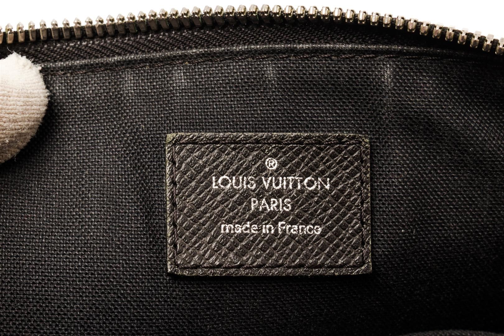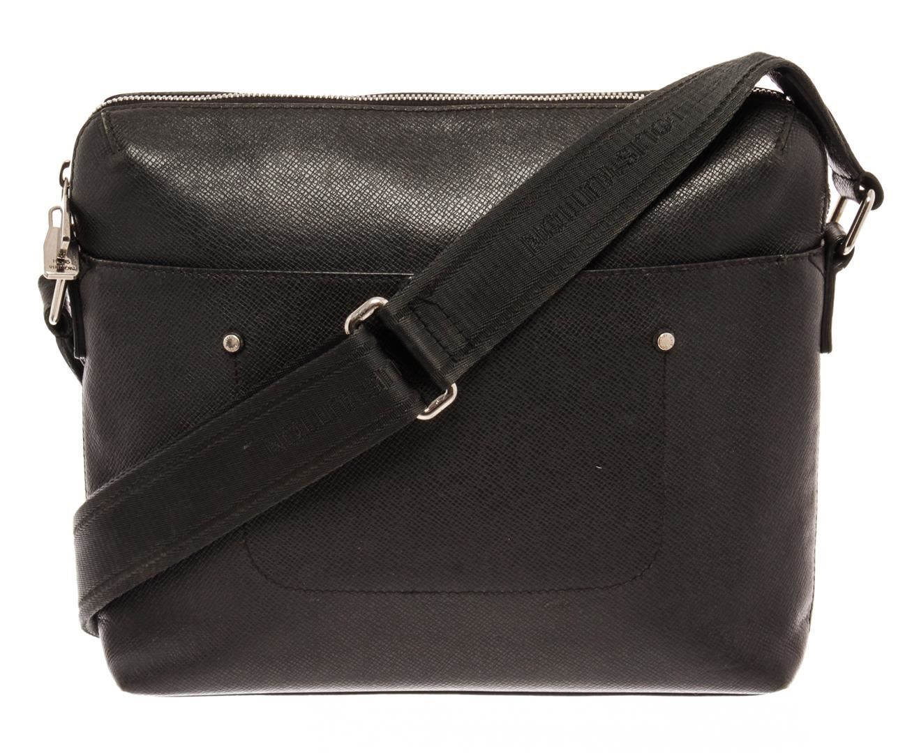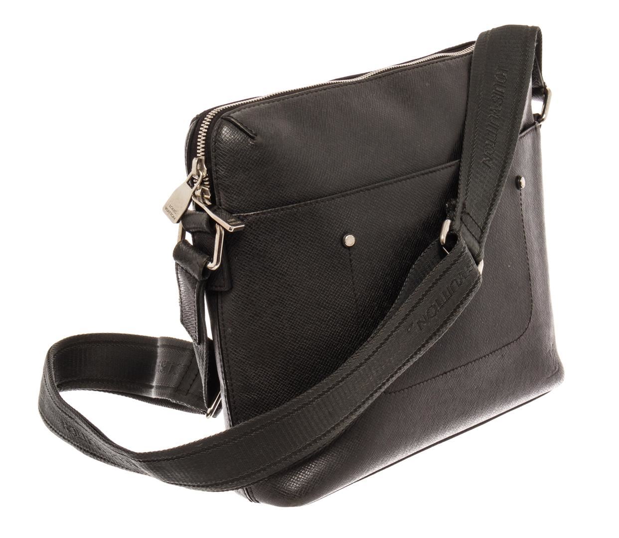 Louis Vuitton Grigori Pochette Messenger Bag. Brand: Louis Vuitton, Style: Grigori Pochette, Type: Messenger Bag, Exterior color: Black Taiga, Exterior material: Leather, Interior color: Black, Interior material: Fabric, Length: 10, Width: 2, Height: 8. I
