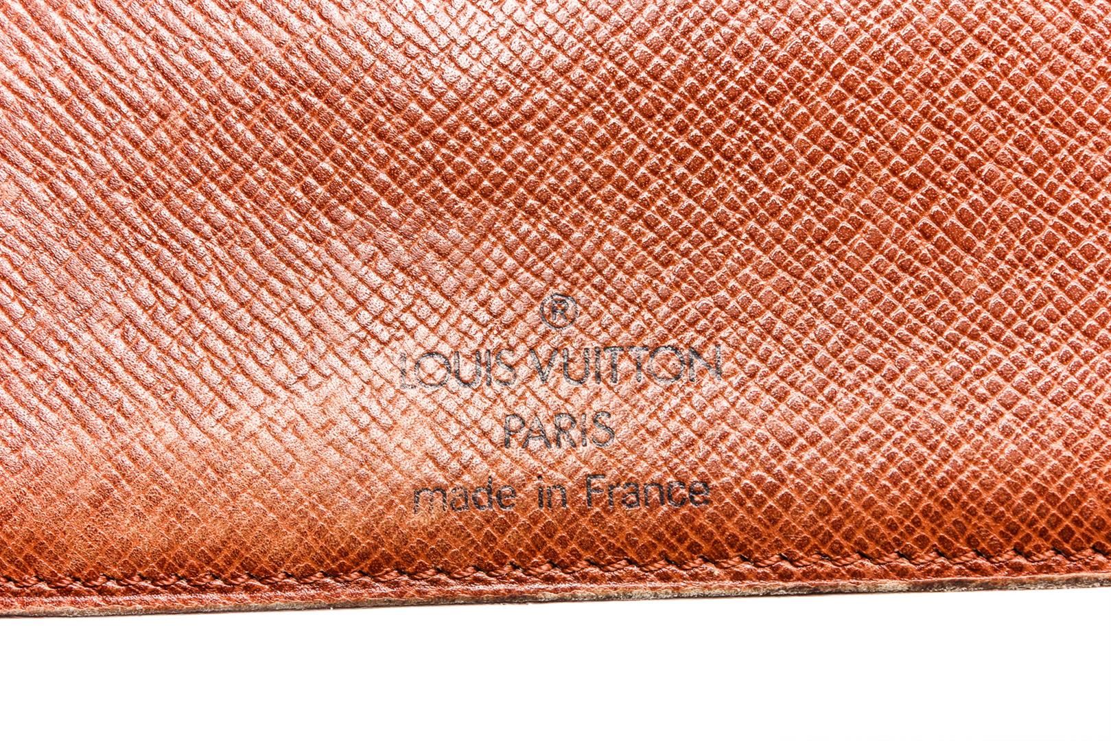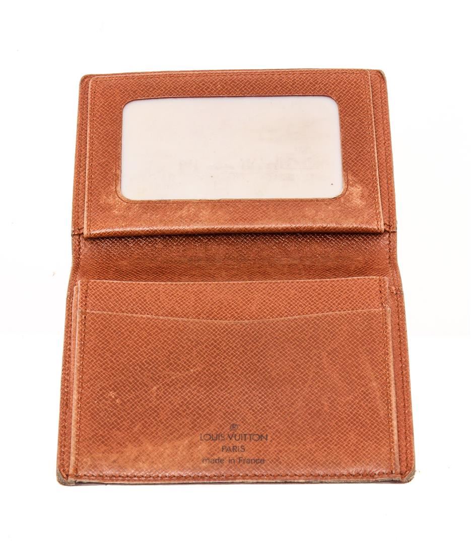 Louis Vuitton Monogram Canvas ID card holder wallet, brown interior lining, three slip pockets, dual ID windows and bifold closure.
