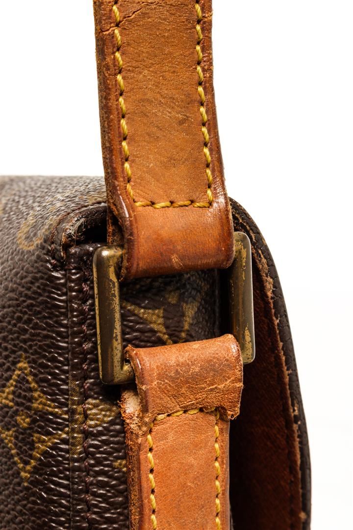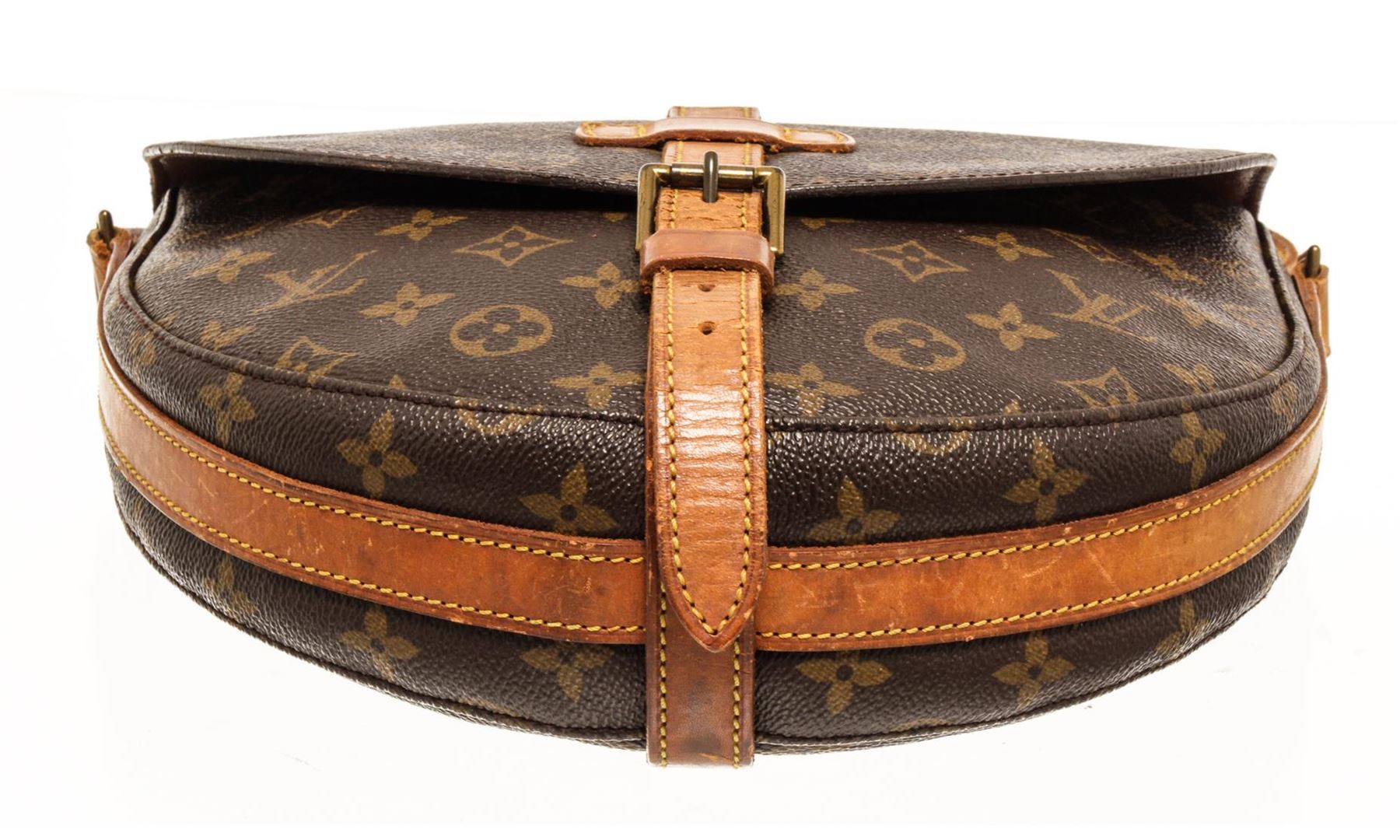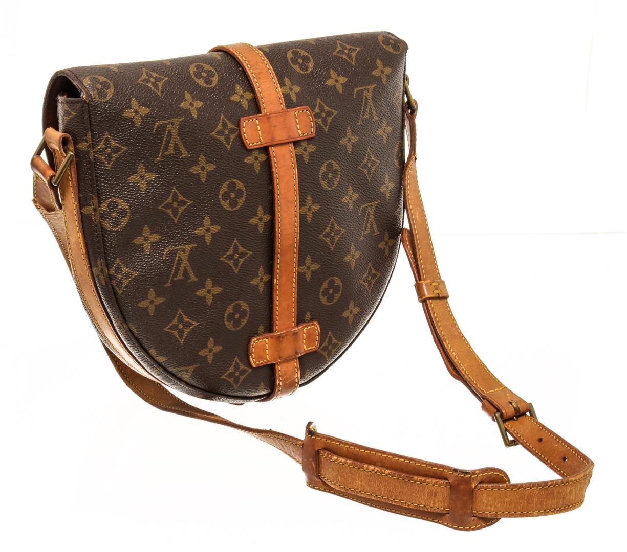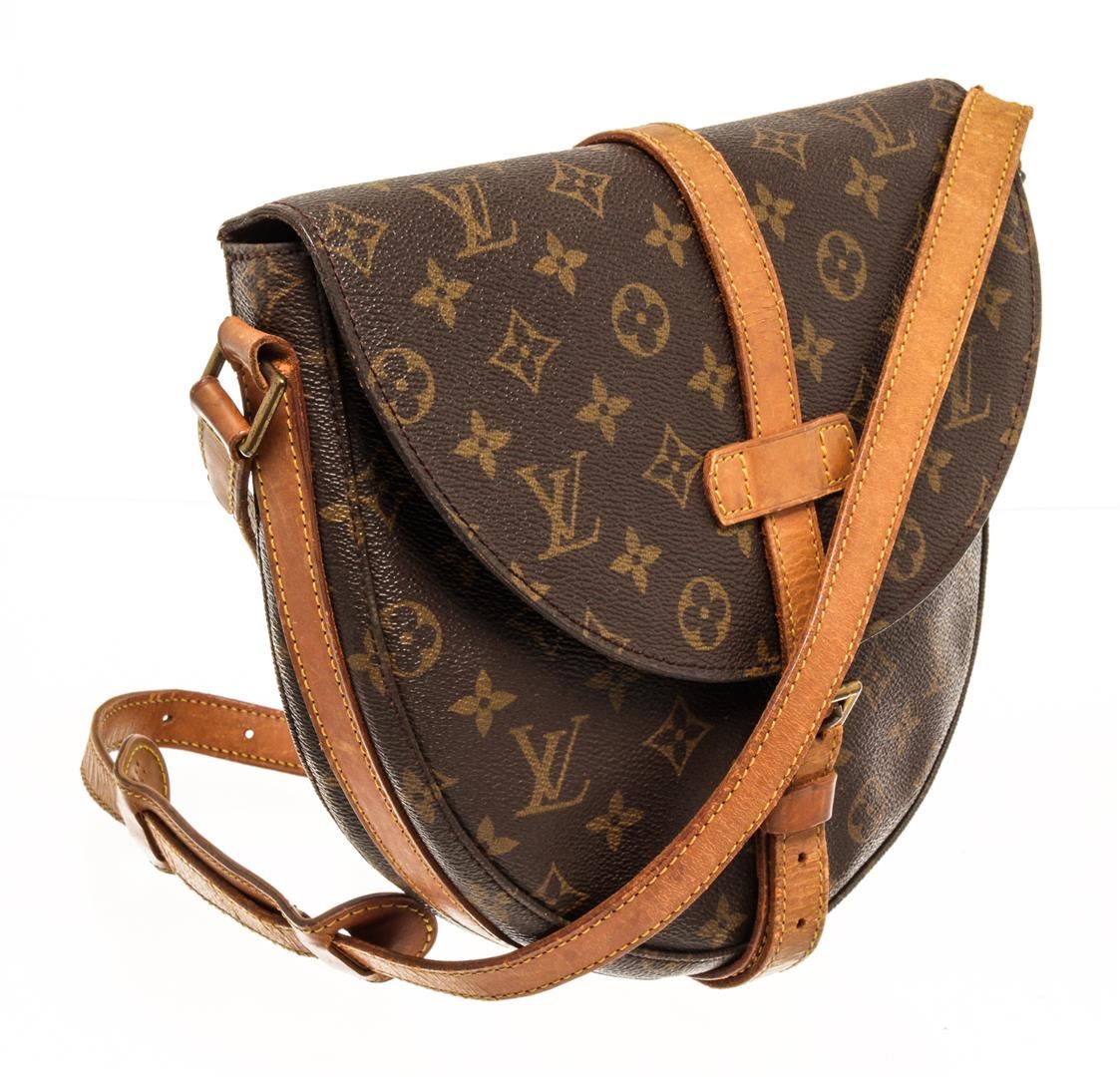One Louis Vuitton Monogram Chantilly GM. Item is sold AS-IS. All available information is listed in the description and shown in the photo. Louis Vuitton Monogram Chantilly GM crossbody bag with brown leather interior, one zip interior pocket, adjustable strap, gold-tone hardware, and flap closure.