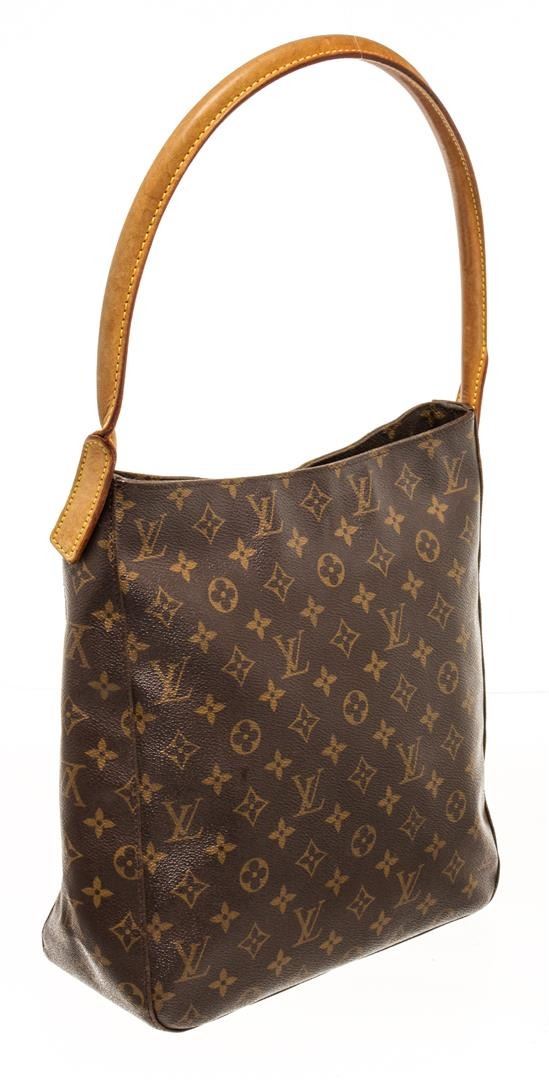 Louis Vuitton Monogram Looping GM. All available information is listed in the description and shown in the photos. Louis Vuitton Monogram Looping GM with vachetta top handle, zipper closure, one zip interior pocket, gold-tone hardware, and brown fabric lining.