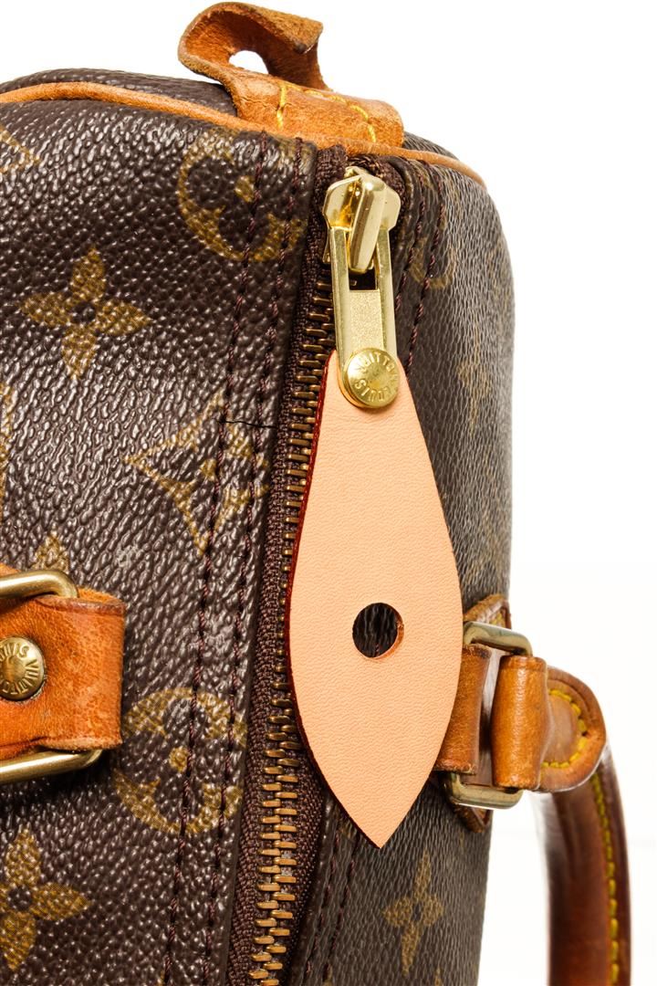 One Louis Vuitton Monogram Speedy 25 Handbag. Item is sold AS-IS. All available information is listed in the description and shown in the photo. Louis Vuitton Monogram Speedy 25 handbag with coated canvas exterior, brown fabric lining, contrasting vachetta leather top handles and trims, gold-tone hardware, zipper closure, and one main compartment with one slip pocket. There is some where on the item please refer to the photos!