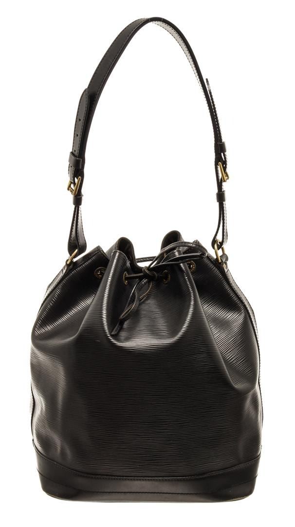 Louis Vuitton Noe MM Bucket Bag. Brand: Louis Vuitton, Style: Noe MM, Type: Bucket Bag, Exterior color: Black Epi, Exterior material: Leather, Interior color: Black, Interior material: Suede, Length: 7, Width: 10, Height: 13. Item is sold AS-IS and all in