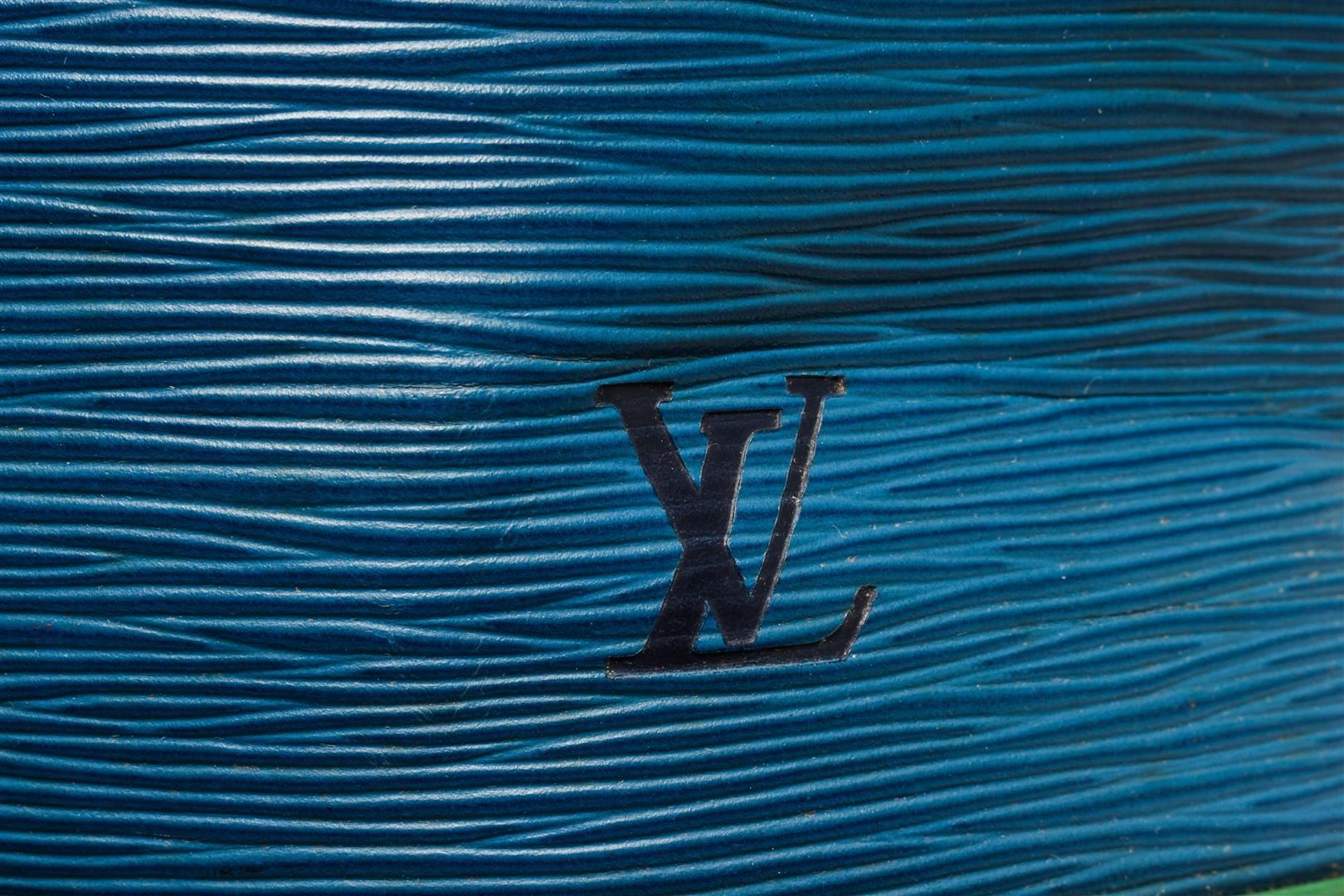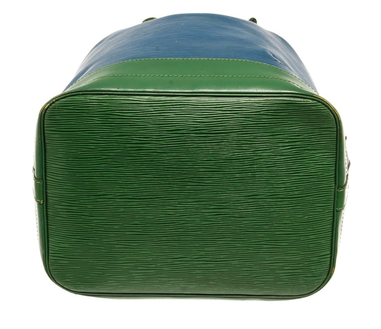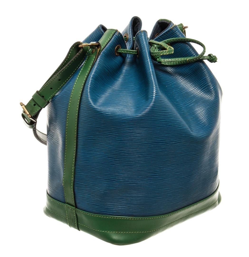 Louis Vuitton Noe PM Shoulder Bag. Brand: Louis Vuitton, Style: Noe PM, Type: Shoulder Bag, Exterior color: Blue Green, Exterior material: Epi Leather, Interior color: Blue, Interior material: Alcantara, Length: 10.5", Width: 7.5", Height: 13.5". Item is