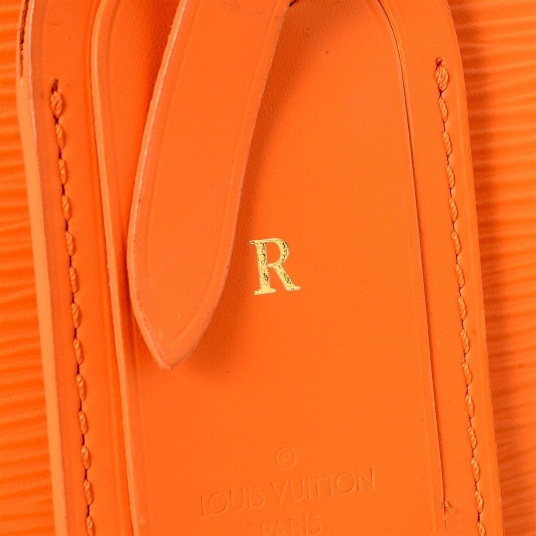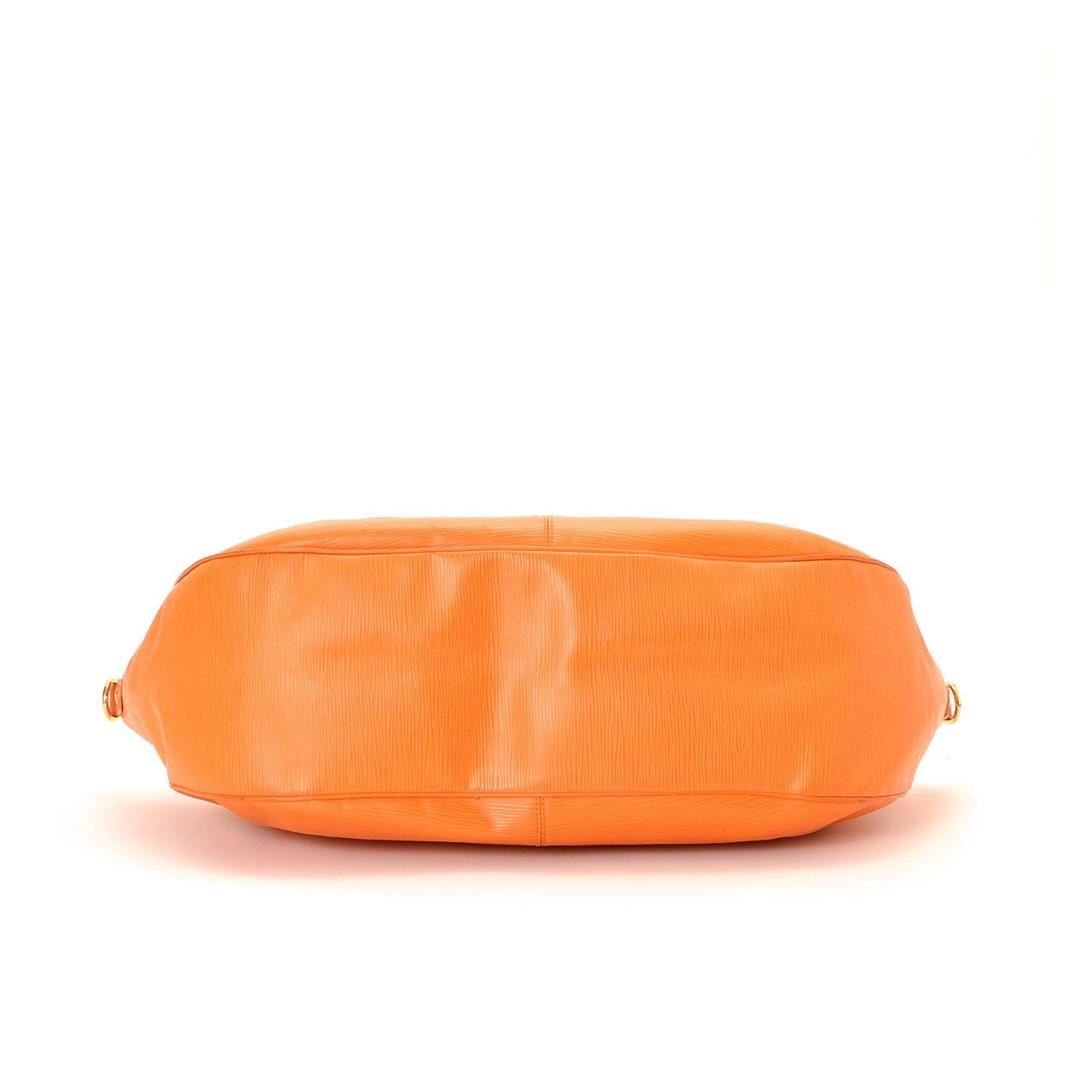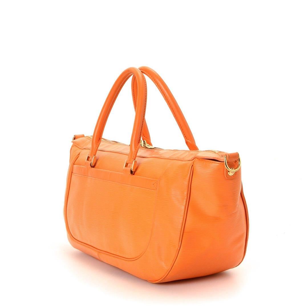 Louis Vuitton Orange Dhanura GM Travel Bag Bag with gold-tone hardware, trim tan vachetta leather, interior slip Pocket, top handle and zipper closure. Measurements: Length: 7.5 in / 19 cm Width: 25.25 in / 64 cm 11 in / 28 cm Condition: Pre-Owned Good overall, please see photographs for detail.