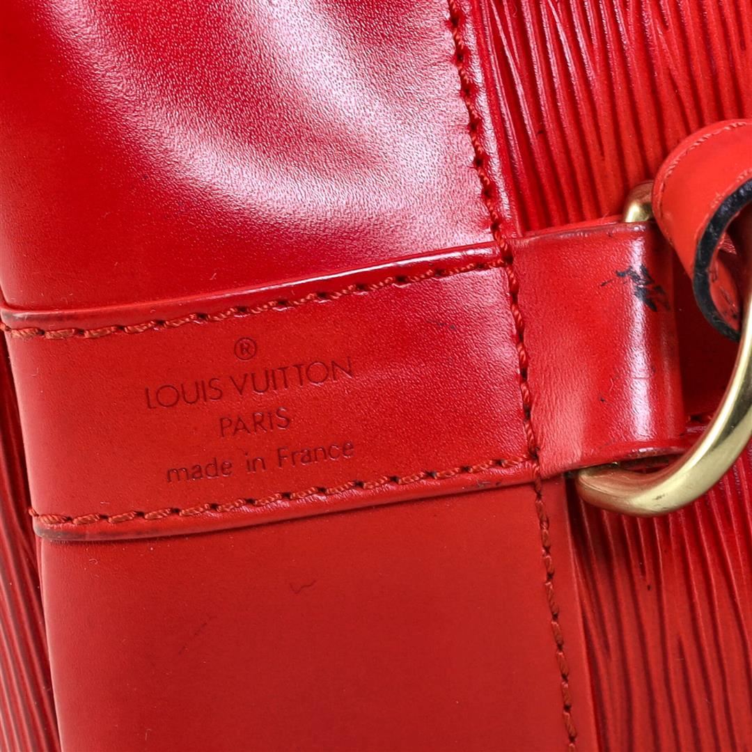 One Louis Vuitton Randonnee Backpack Epi Leather PM. Item is sold AS-IS. All available information is listed in the description and shown in the photo. Louis Vuitton Randonnee Backpack Epi Leather PM. Odor in interior. Creasing on exterior, minor wear and marks on opening and base trim. Fraying on strap wax edges, scratches and tarnish on hardware.