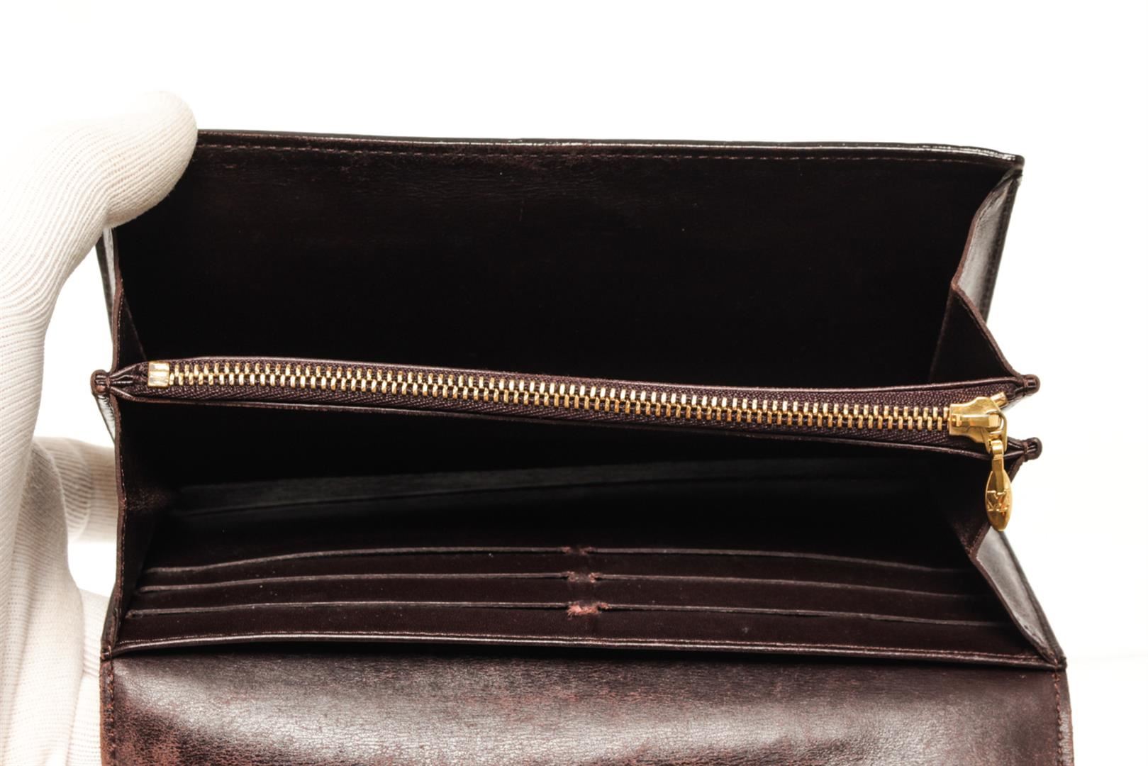 One Louis Vuitton Red Brown Vernis Leather Sarah Wallet. Item is sold AS-IS. All available information is listed in the description and shown in the photo. louis vuitton red brown leather sarah wallet.