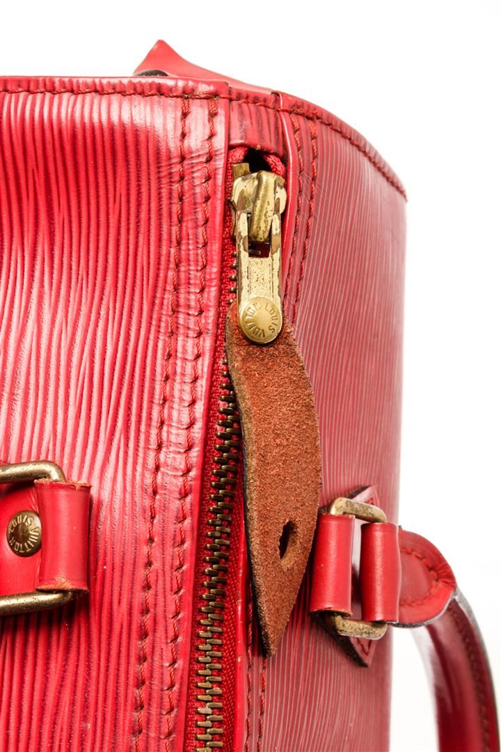 One Louis Vuitton Red Epi Leather Speedy 25 Satchel Bag. Item is sold AS-IS. All available information is listed in the description and shown in the photo. Louis Vuitton Red Epi Leather Speedy 25 Satchel Bag with top handle, exterior side pocket, suede lining, interior slip pocket, gold tone hardware, zipper closure. There is stain on the suede lining, a scratch on the leather. Please refer to photos. Depth 5.9 in, Height 7.9 in, Width 11 in, Handle 3.1 in/ Depth 15 cm, Height 20 cm, Width 28 cm, Handle 8 cm