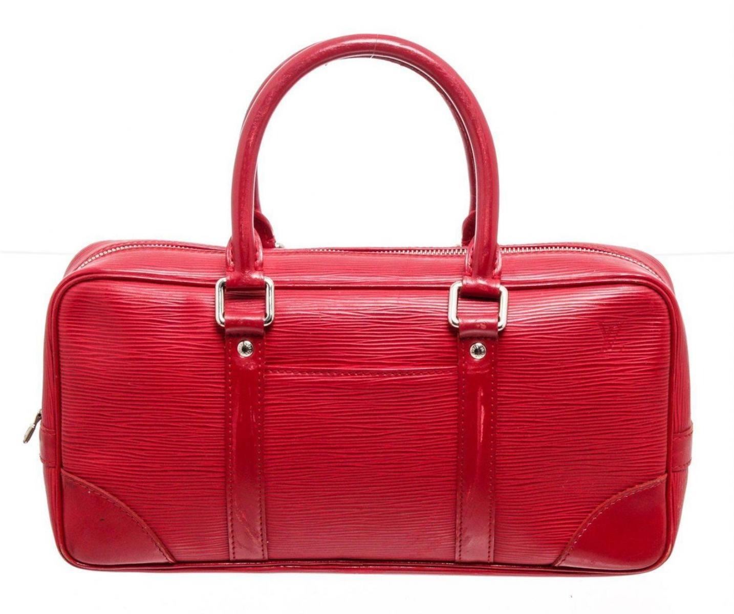 Louis Vuitton Red Epi Leather Vivienne Satchel with gold-tone hardware, dual rolled top handles, leather lining, dual slip pockets at interior walls and two-way zip closure. CONDITION: Pre-Owned Good overall, please see photographs for detail.