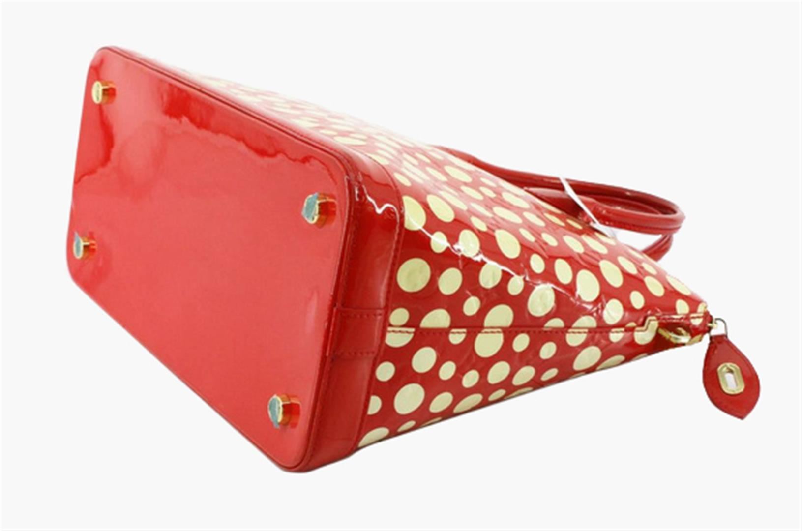 Louis Vuitton Red Vernis Dot Leather Yayoi Kusama Lockit Vertical MM Satchel Bag