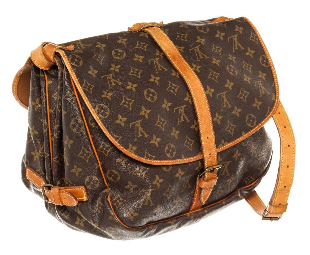 Louis Vuitton Saumur 35 Crossbody. Brand: Louis Vuitton, Style: Saumur 35, Type: Crossbody, Exterior color: Monogram, Exterior material: Coated Canvas, Interior color: Brown, Interior material: Canvas, Length: 12.75", Width: 9.23", Height: 10.75". Item is