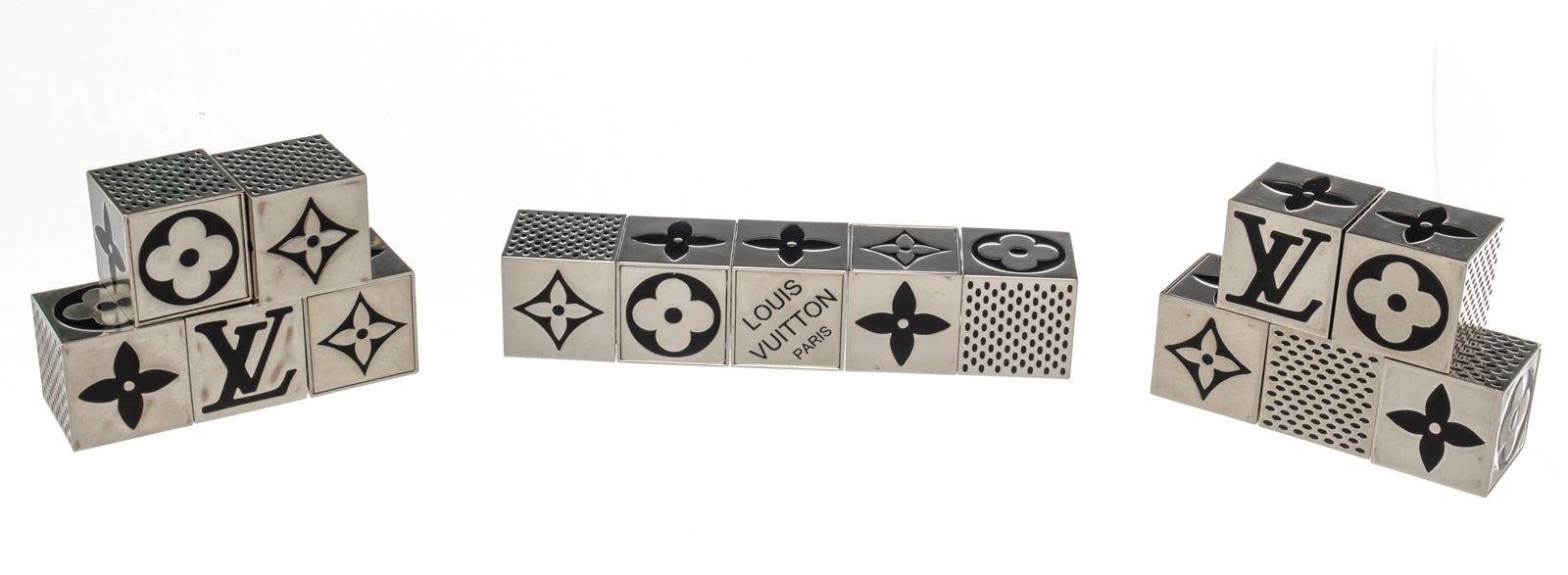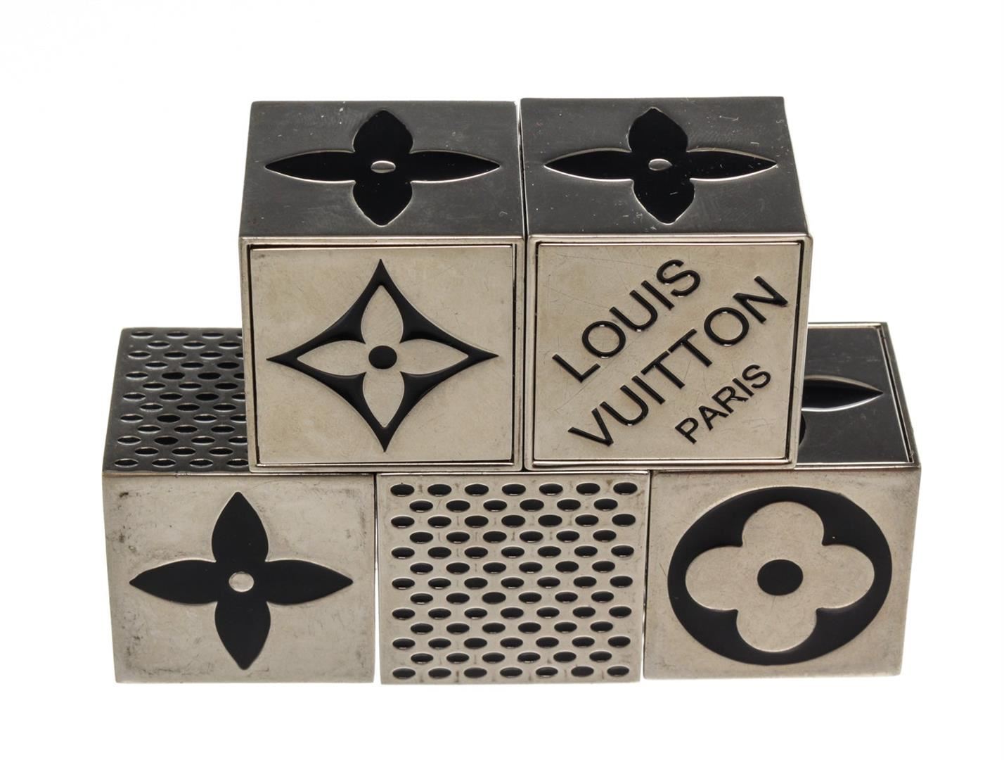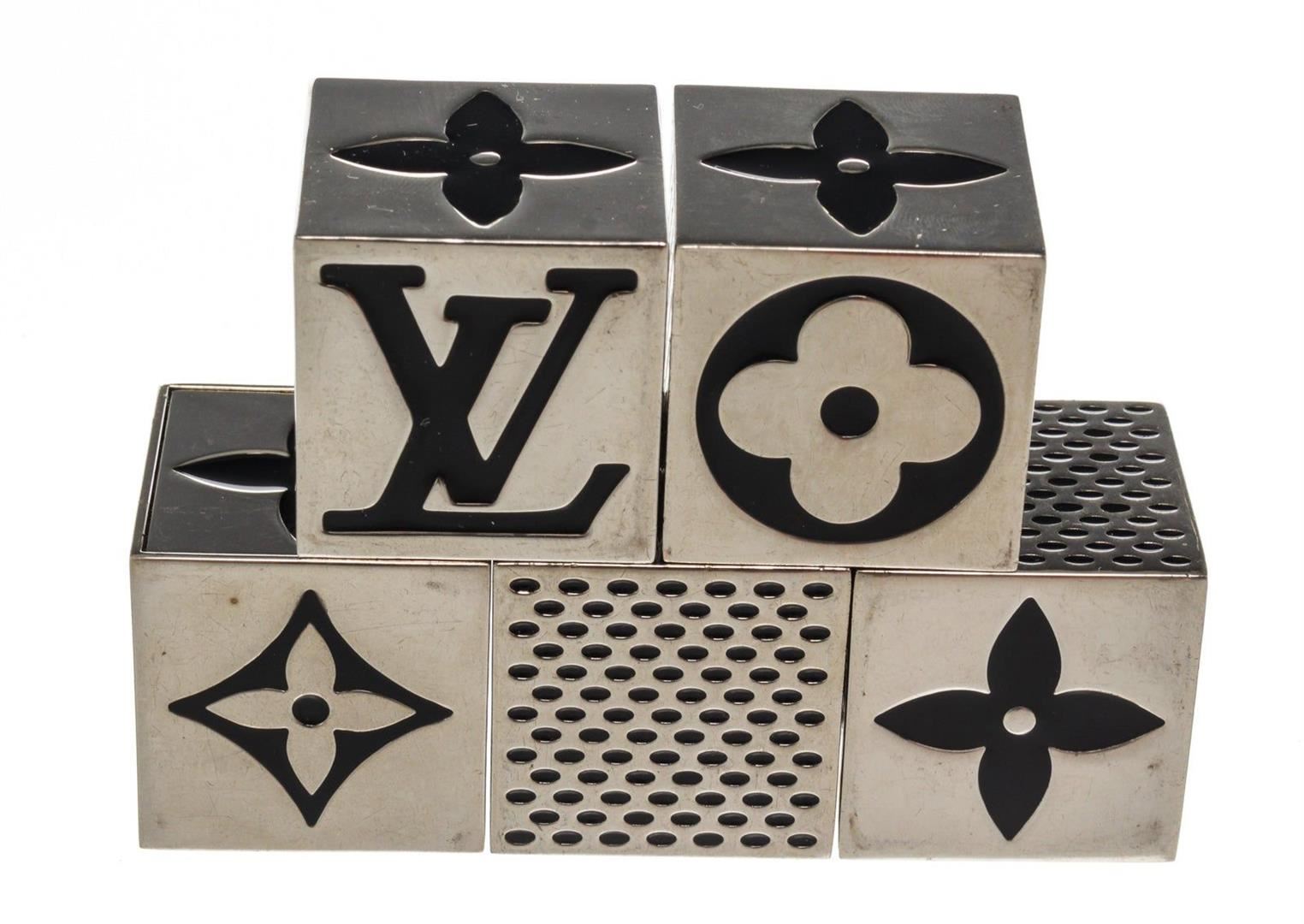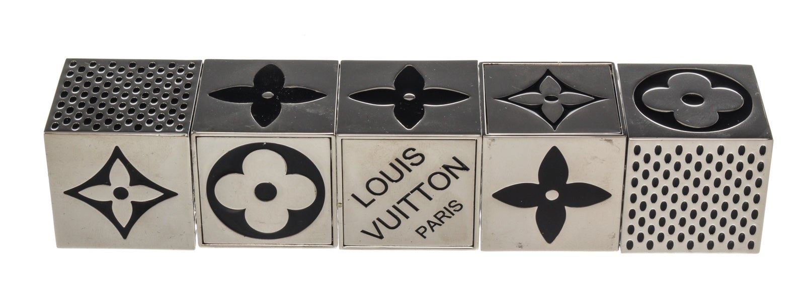Louis Vuitton Silver Magnetic Cube Dice with silver-tone hardware.