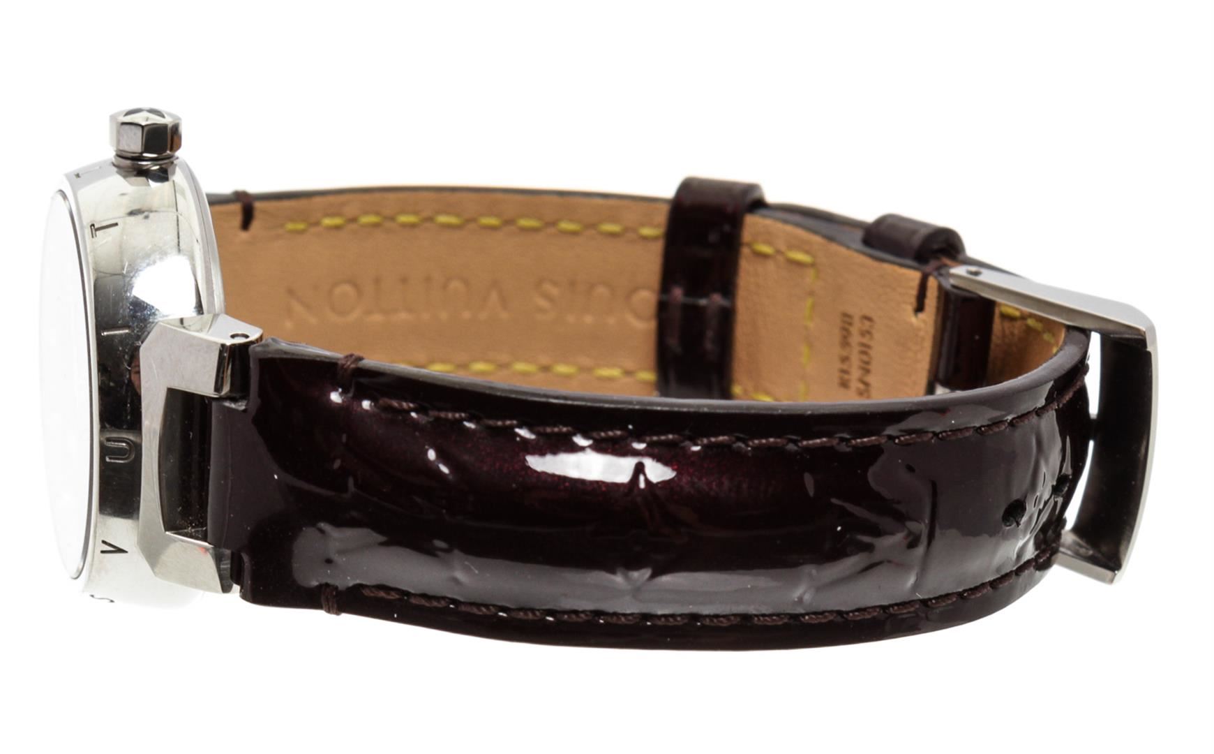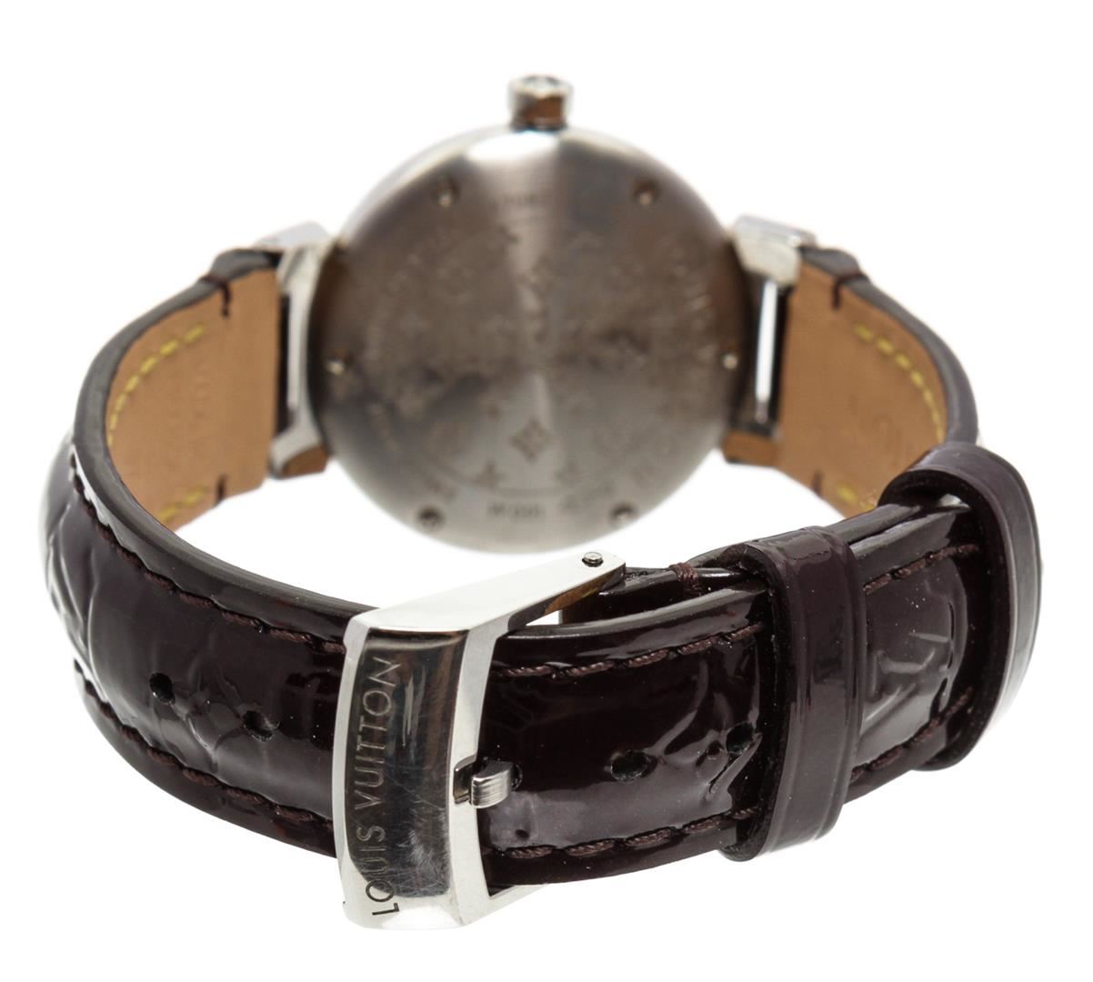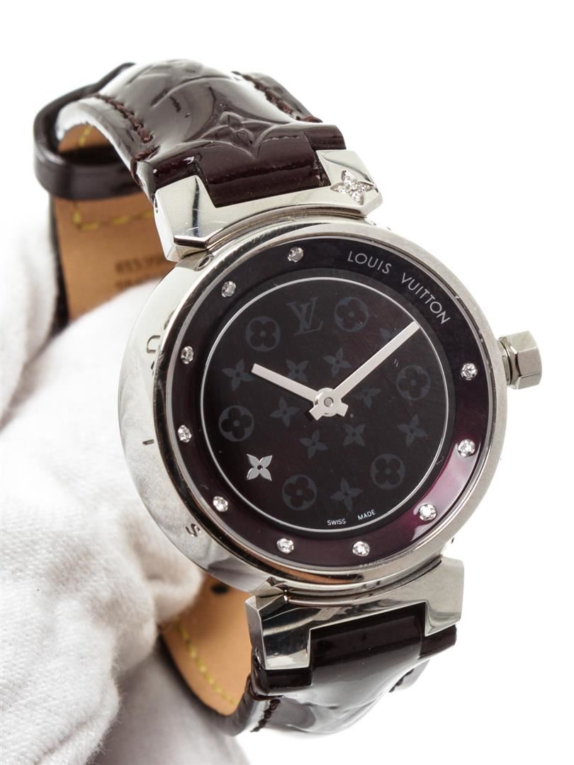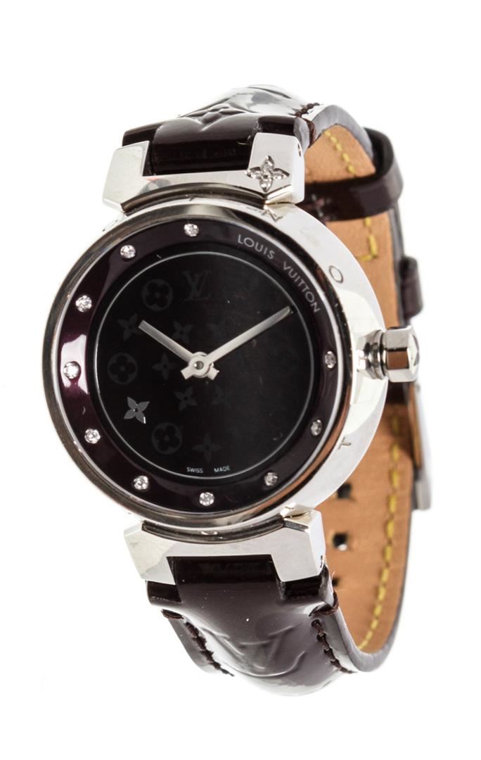 One Louis Vuitton Vernis Amarante Tambour Q12M3 Watch.