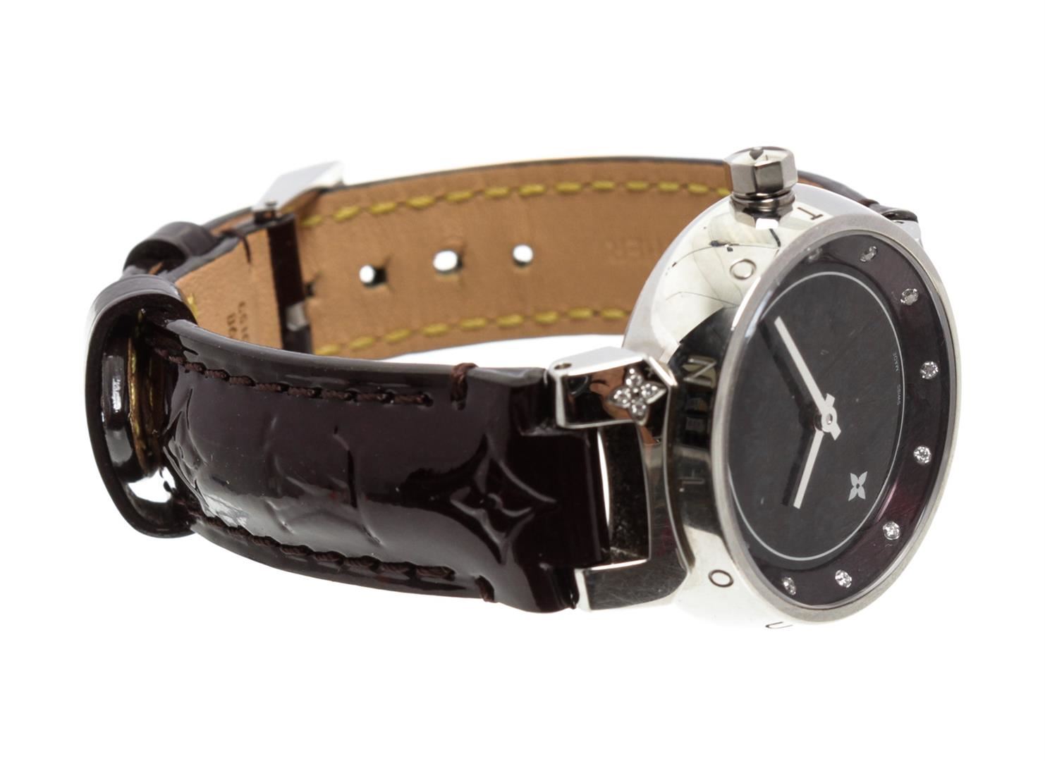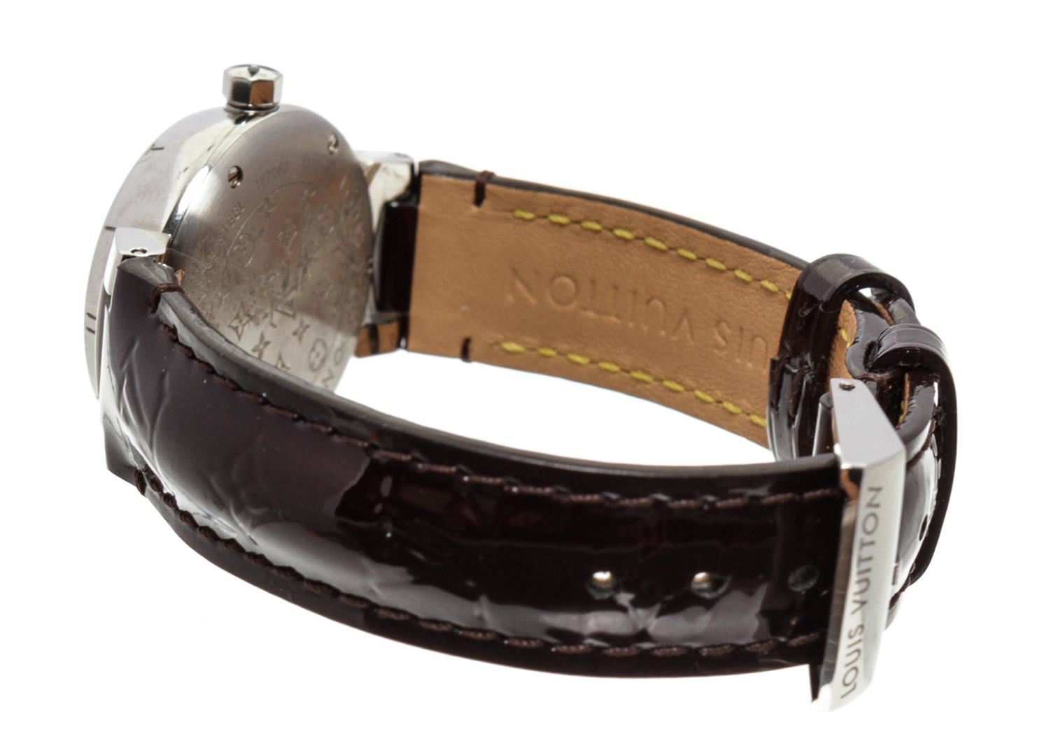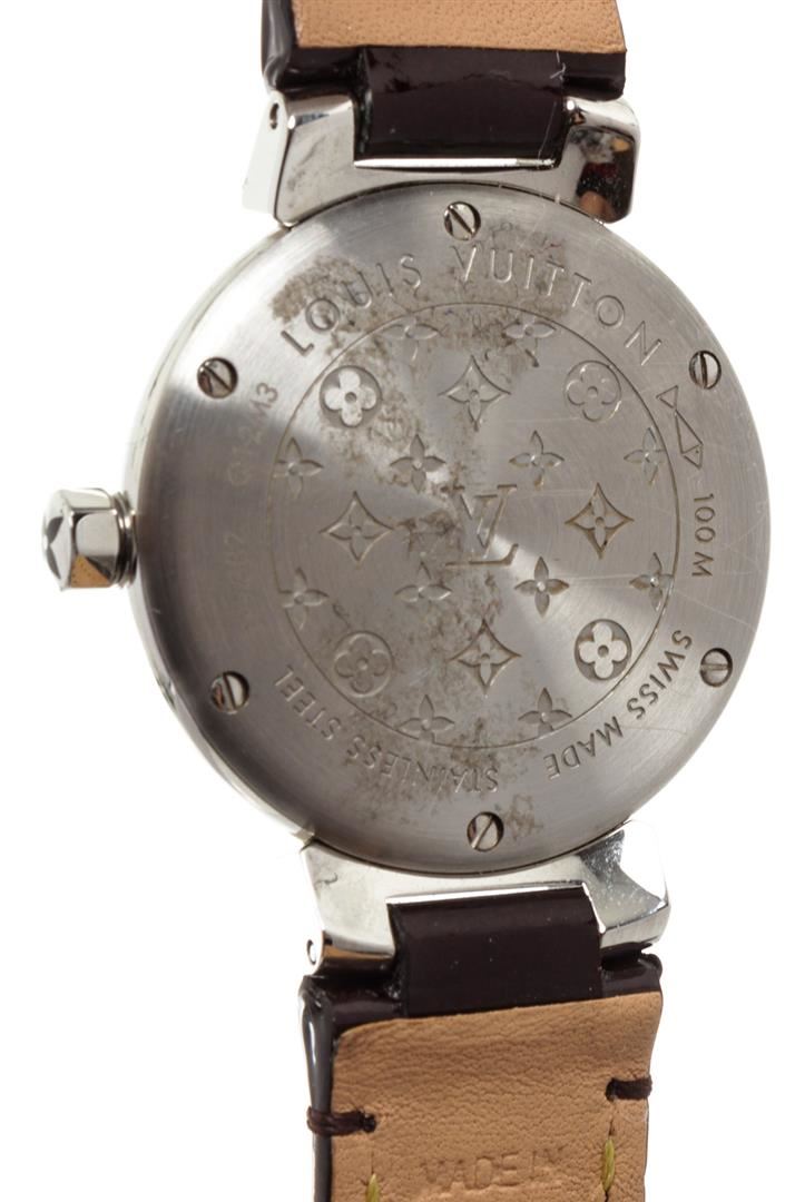 One Louis Vuitton Vernis Amarante Tambour Q12M3 Watch.