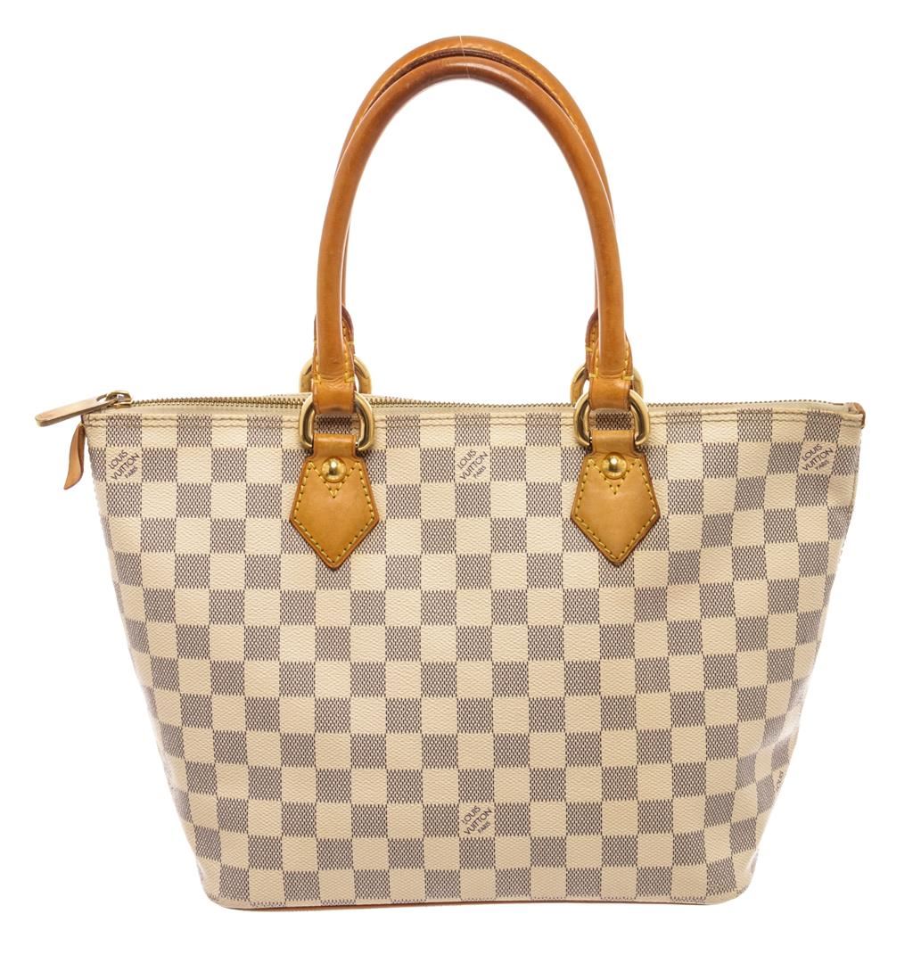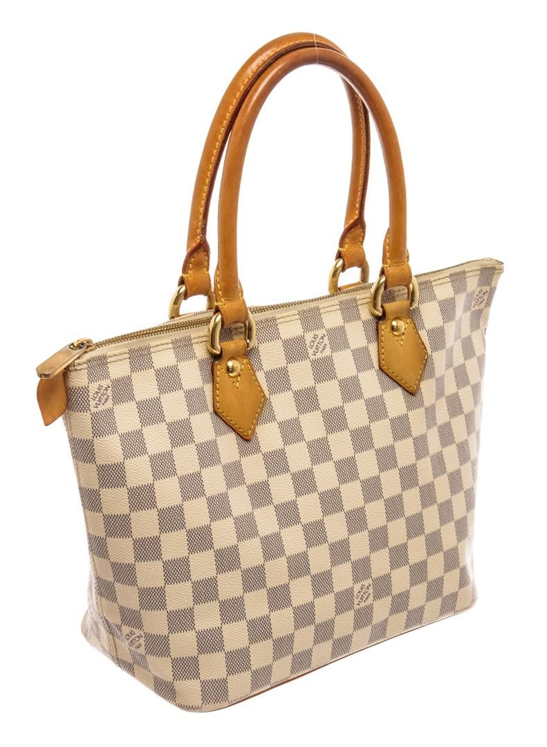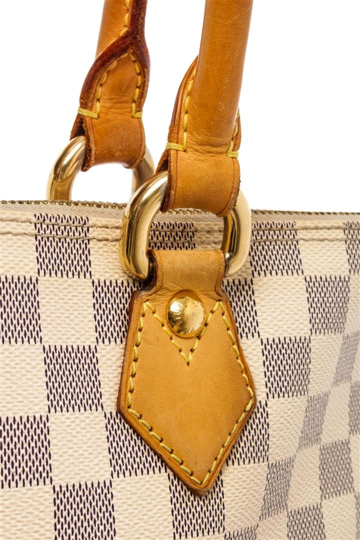 Louis Vuitton White Damier Azur Saleya PM Shoulder Bag. All available information is listed in the description and shown in the photos. Louis Vuitton White Damier Azur Saleya PM Shoulder Bag with leather trim, two top handles, top zip fastening, main compartment, internal slip pocket, gold-tone hardware. Depth 5.3 in, Handle 5.5 in, Height 9.1 in, Width 13.8 in / 13.46 x 23.11 x 35.05 CM, Handle: 13.97 CM