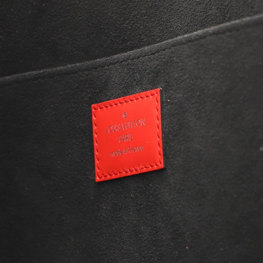 One Louis Vuitton X Supreme Red Epi Leather Pochette Jour Limited Edition GM Pouch. Item is sold AS-IS. All available information is listed in the description and shown in the photo. Louis Vuitton Red Epi Leather Pochette Jour Limited Edition with Supreme with silver-tone hardware, cowhide-leather lining, interior slip pocket and L-zipper closure. Height 10", Width 13.5", Depth 1"