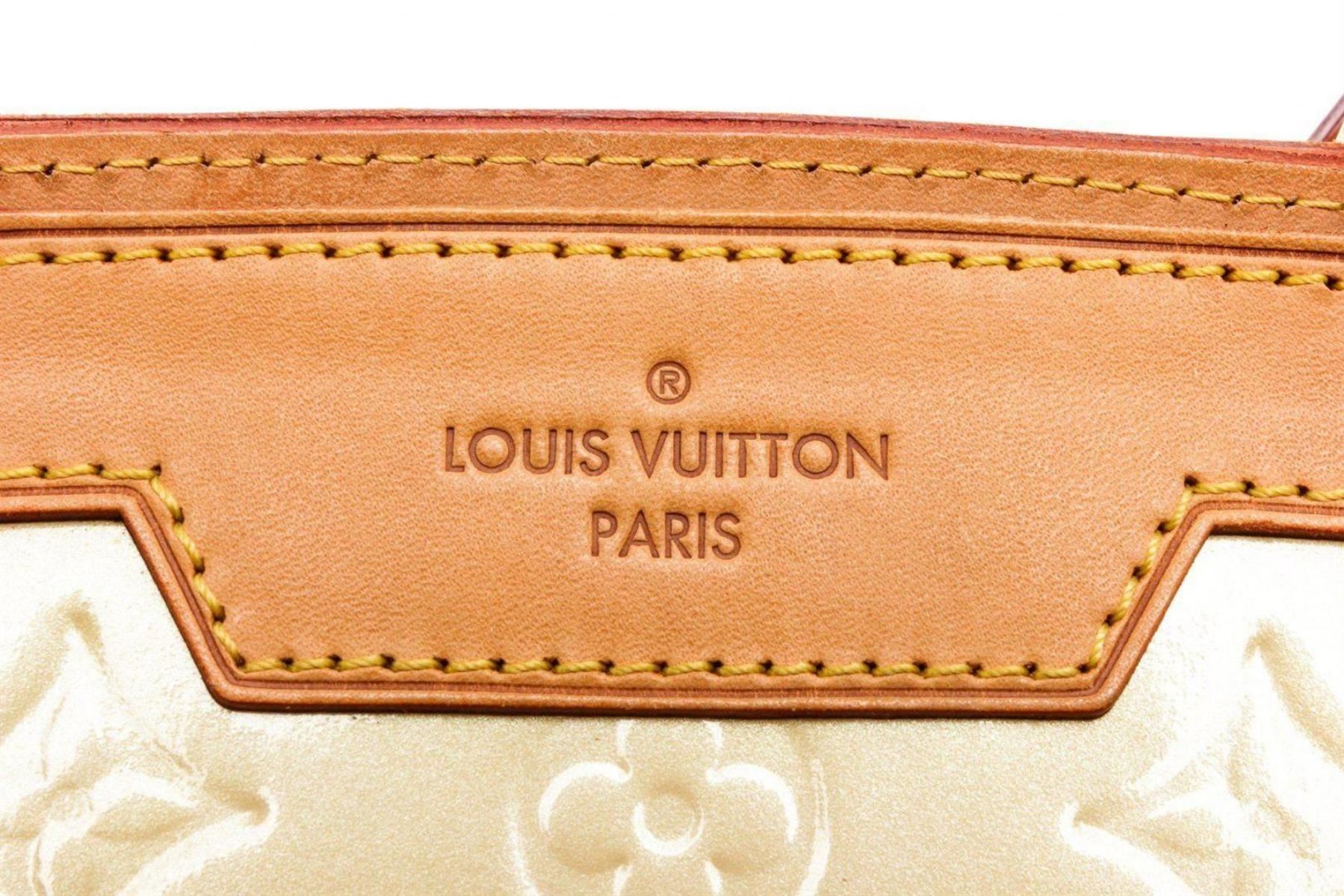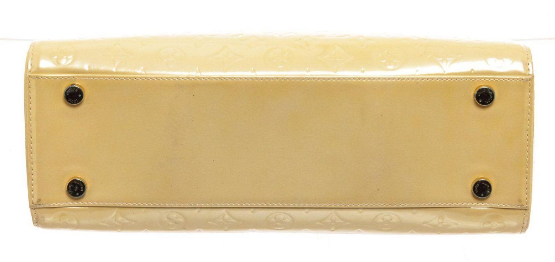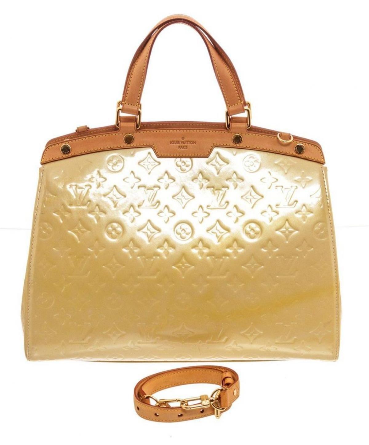 Louis Vuitton Yellow Brea GM Shoulder Bag with material vernis leather, gold-tone hardware, trim tan vachetta leather, interior three compartments pocket, dual top handle, shoulder strap and zip closure.