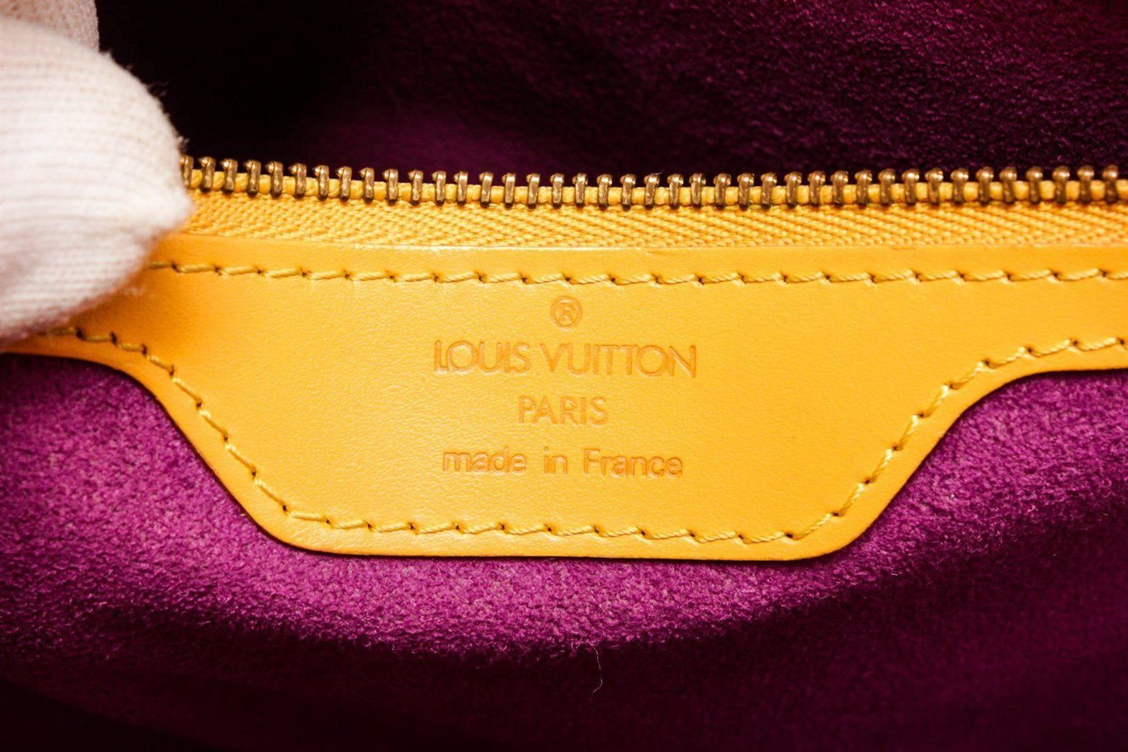 Louis Vuitton Yellow Infini Leather St. Jacques Shopping Tote Bag with gold-tone hardware, flat handles, alcantara lining & single interior pocket, zip closure at top. Measurements: Length: 4 in / 10 cm Width: 9 in / 23 cm 9.5 in / 24 cm Condition: Pre-Owned Good overall, please see photographs for detail.