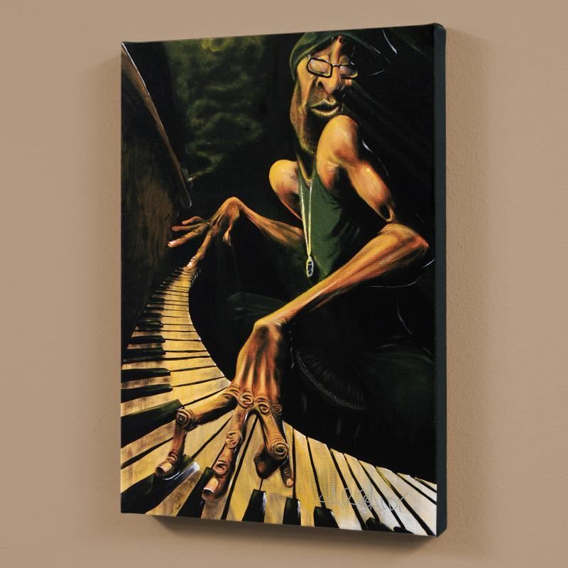 Combining his passions for music and art, David Garibaldi creates visual poetry. "Lounge Smoke" is a limited edition giclee on stretched canvas, E numbered and bearing the artist's authorized signature. This piece comes gallery wrapped. Includes Letter of Authenticity. Measures approx. 24" x 36" (image).