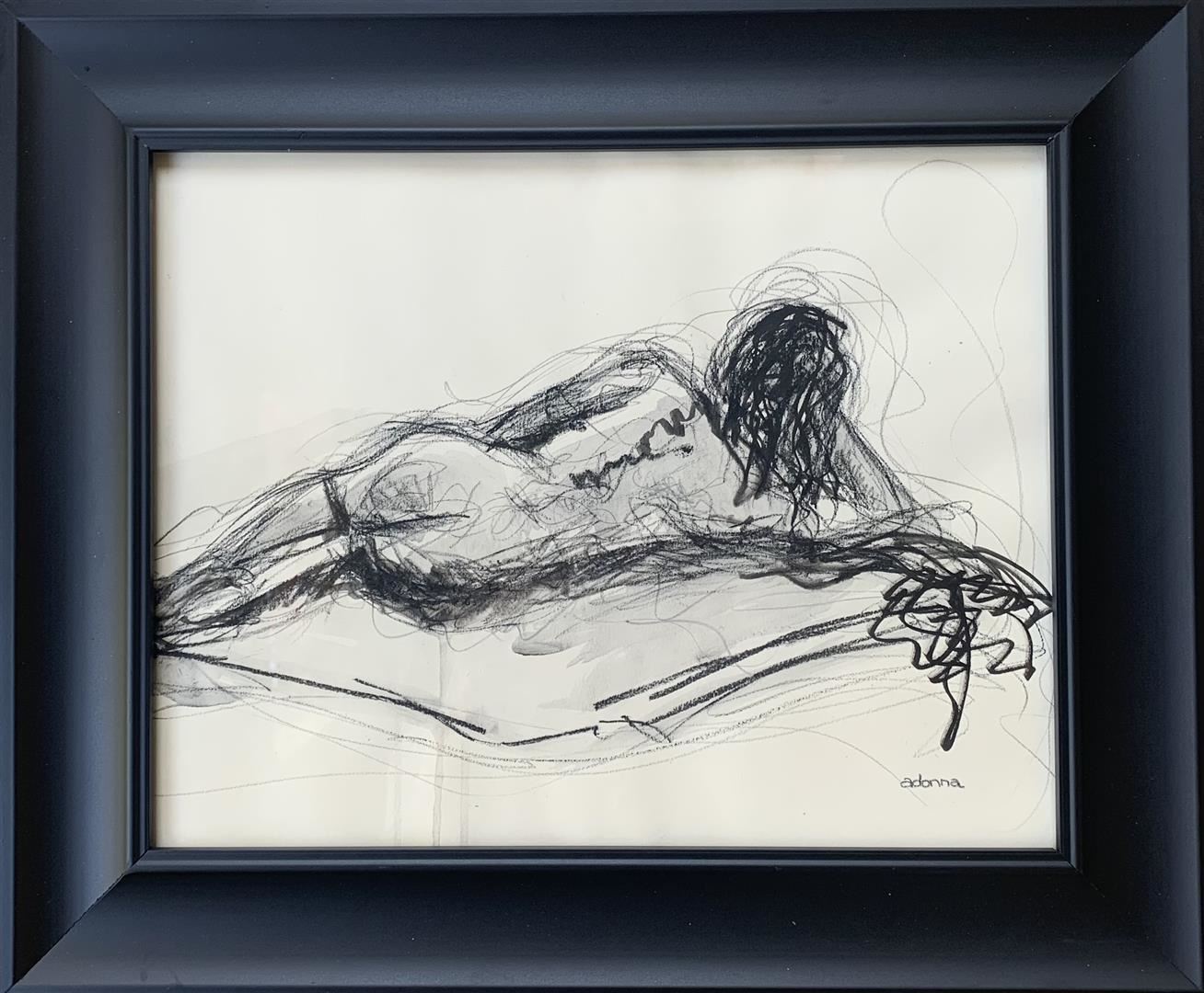 Graphite on paper, framed (black) 18.5" x 15.5" by Adonna framed in black moulding . COA