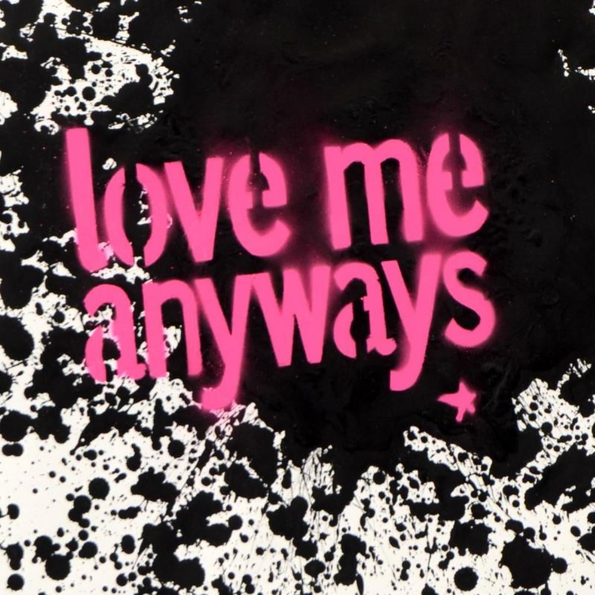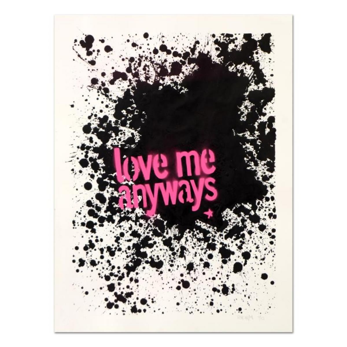 "Love Me Anyways" is a hand painted unique variation silkscreen on archival paper numbered 7/12 hand signed by the artist. Includes Letter of Authenticity. Measures approx. Measures approx. 18" x 24" (image).