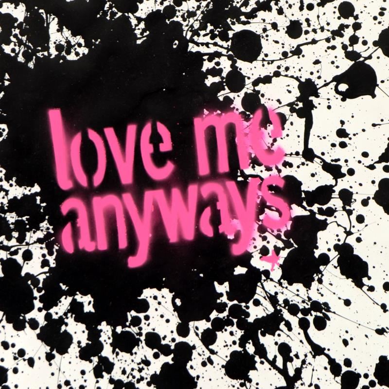 "Love Me Anyways" is a hand painted unique variation silkscreen on archival paper numbered 9/12 hand signed by the artist. Includes Letter of Authenticity. Measures approx. Measures approx. 18" x 24" (image).