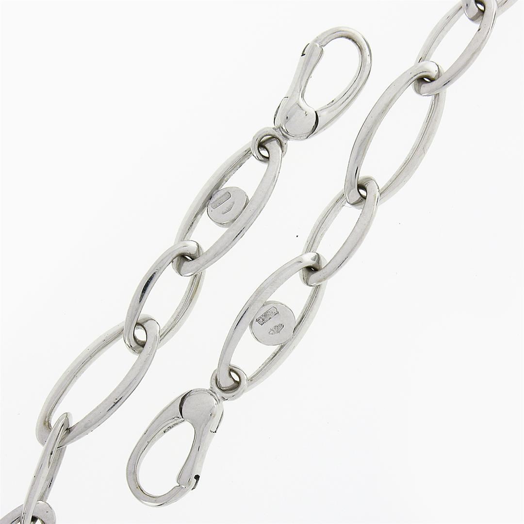 A solid 18k white gold chain necklace by Luca Carati, with 4 round cabochon cut natural black onyx (14.5mm). 31 inch oval link chain, 43.76 grams total weight.