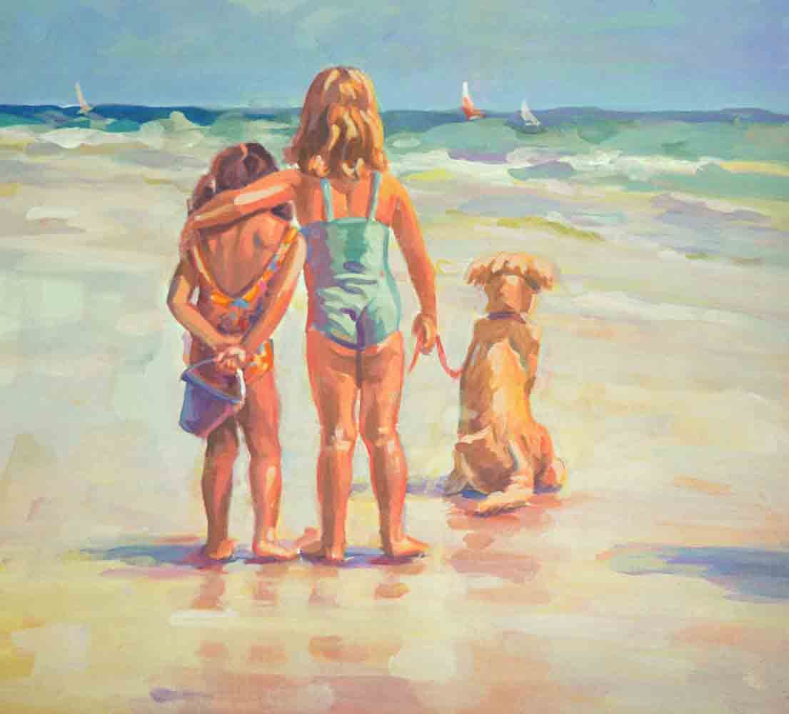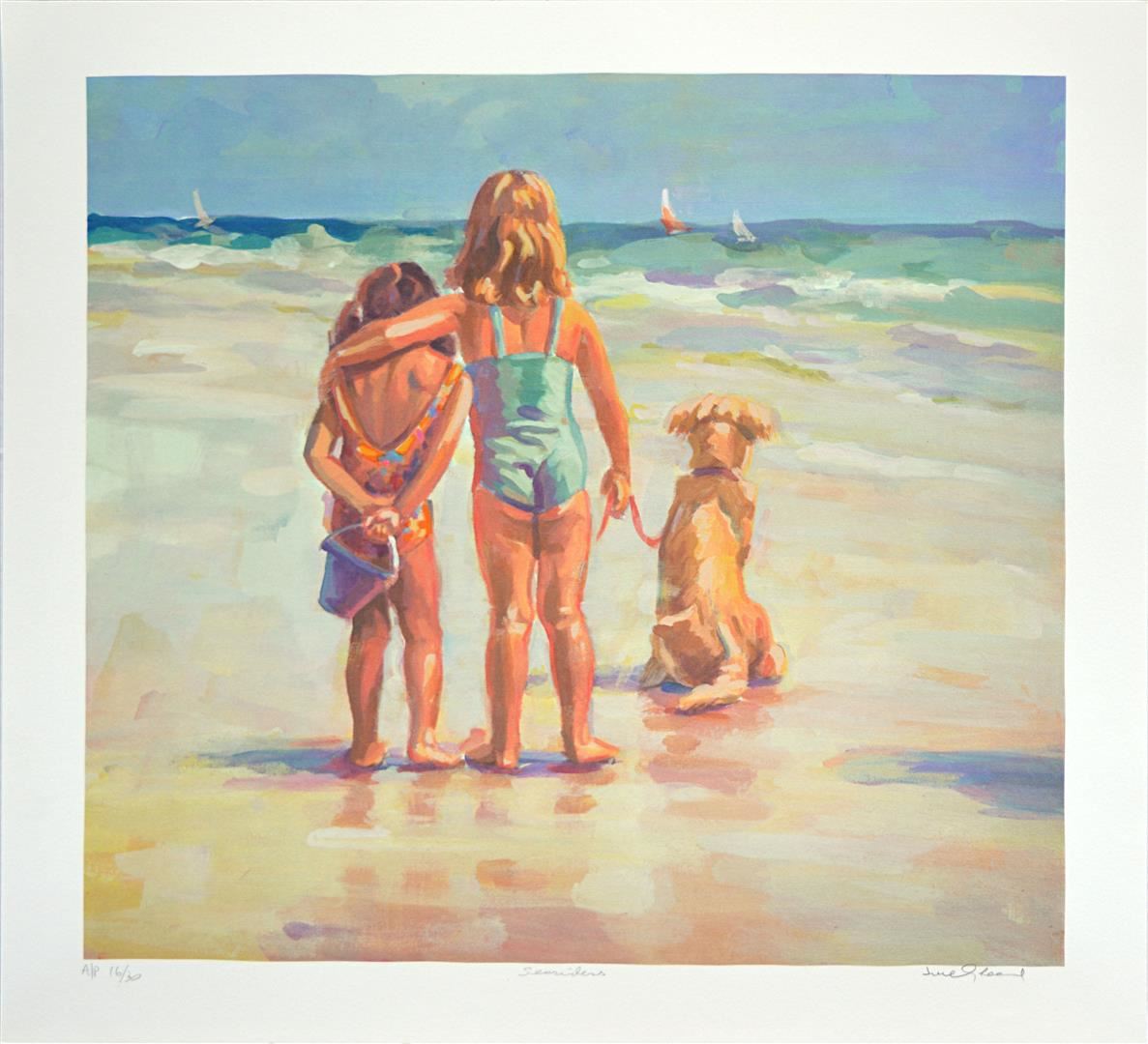 Artist: Lucelle Raad (b. 1942) - Title: Sea Siders - Medium: Serigraph on Fine Art Paper - Signature: Hand-signed by the Artist - Limited Edition: AP 30 - Image Size: Approximately 18 Inches x 20 inches - Paper Size: Approximately 21 inches x 23.25 inches - Unframed - Details: This work comes with a Certificate of Authenticity - Biography: Many are touched by Lucelle's blending of the hopeful innocence of children in a commonplace setting. Each case awakens nostalgia for that youthful honesty and simplicity in all that view her work. The recipient of multiple awards, her most prized award was received at the world famous Washington Square Art Exhibit, an annual event in New York which is an invitational, juried show with over 500 artists from every corner of the globe. Lucelle's art graces many corporate, public, and private collections in every state in the union and in countries around the world.
