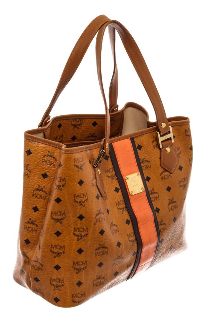 MCM Brown Visetos Leather-Trimmed Tote Bag