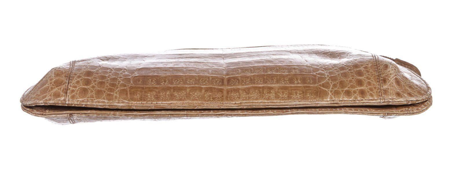 MCM Light Brown Crocodile Leather Evening Clutch. All available information is listed in the description and shown in the photos. Light brown crocodile leather MCM Evening clutch with gold-tone hardware, leather interior lining, zipper pocket at interior wall and an overall zipper closure. 13"x1.75"x5"