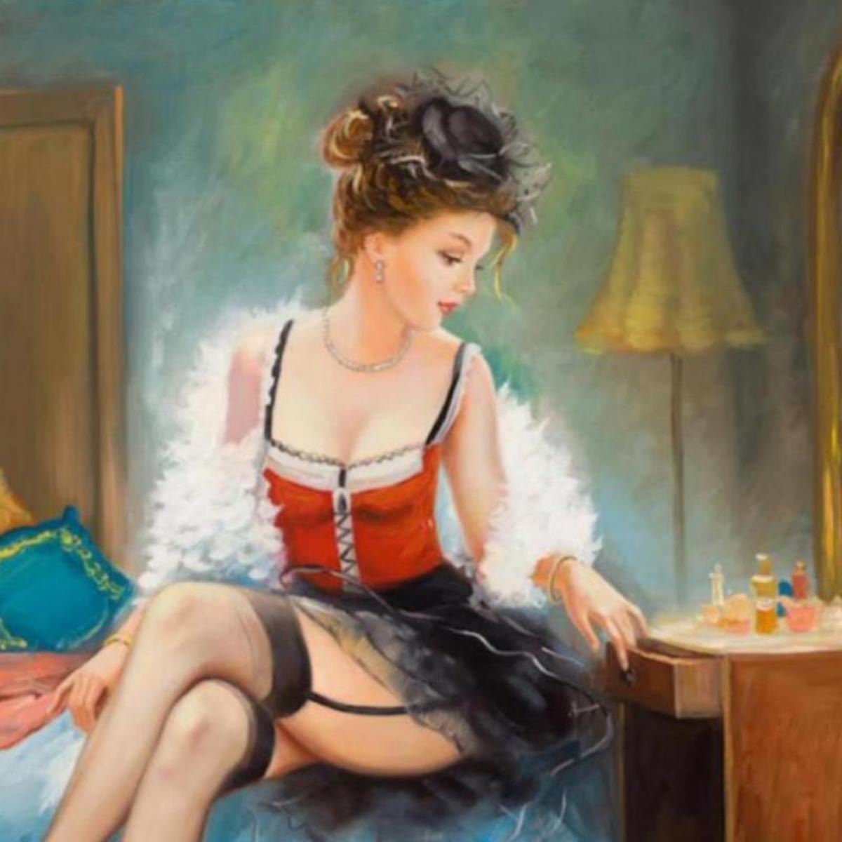"Mademoiselle" is a limited edition Giclee on Canvas by Taras Sidan. The piece is numbered, hand siged by the artist, and come with a letter of authenticity. Measures approximately 24" x 20".