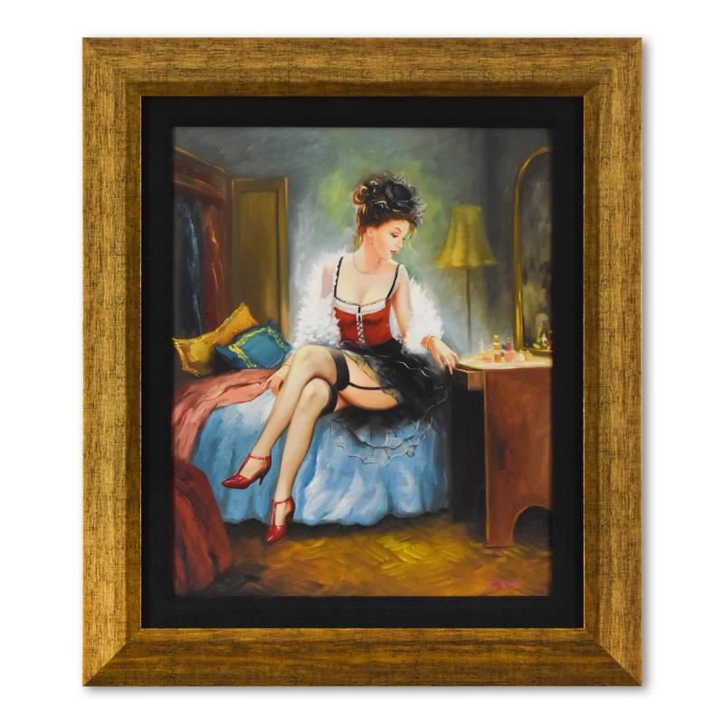 "Mademoiselle" is a limited edition giclee on canvas by Taras Sidan, numbered and hand signed by the artist. This piece comes custom framed. Includes Letter of Authenticity. Measures approx. 23.5" x 27.5" (frame), 15.5" x 19.5" (image).