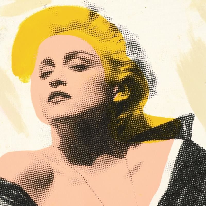 "Madonna in Leather" is a one-of-a-kind hand-pulled silkscreen and mixed media painting on canvas by Ringo (Daniel Funes) - protege of Andy Warhol's apprentice, Steve Kaufman. This piece is hand signed by the artist and Includes Certificate of Authenticity. This piece comes from the Andy Warhol Legacy Series. Due to the nature of the canvas these, pieces will need to be mounted for framing. Measures approx. 12" x 16" (image).