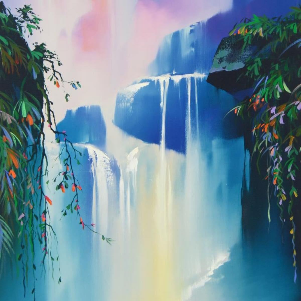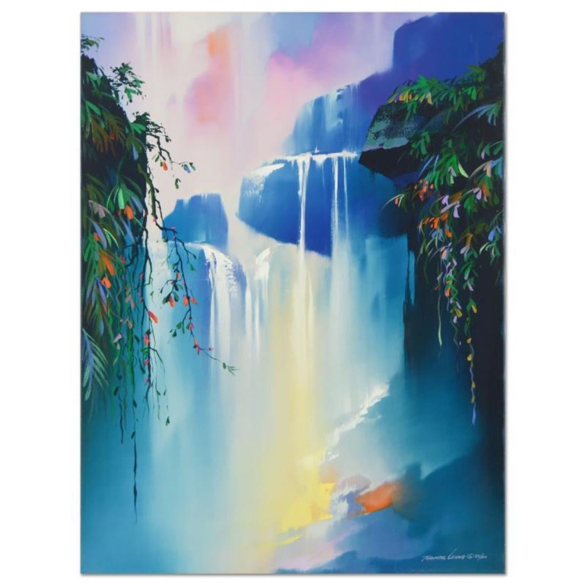 "Magic Fall" is a hand embellished limited edition giclee on stretched canvas by Thomas Leung, numbered and hand signed by the artist. Includes Letter of Authenticity. Measures approx. 22" x 29" (image).