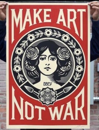 A famous Street Art hand-signed poster by Shepard Fairey. One of the artist's signature images, pencil signed with COA sticker. Poster is 36x24 unframed.