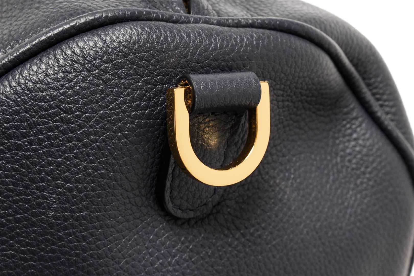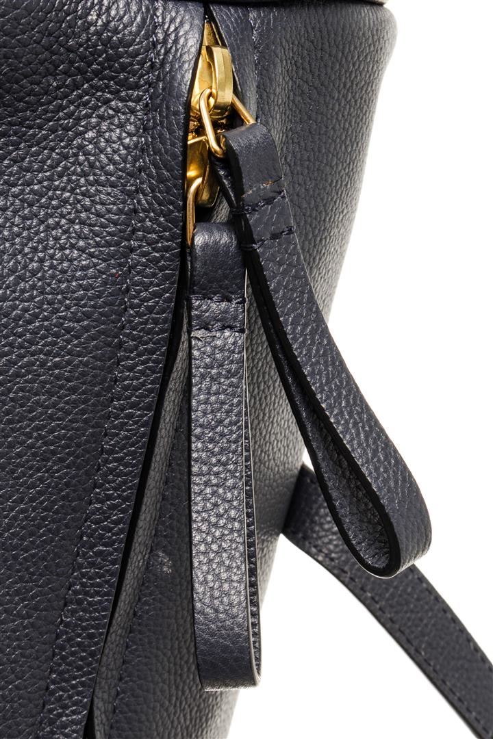 Mansur Gavriel Black Leather Duffle Mini Bag. All available information is listed in the description and shown in the photos. Mansur Gavriel Black Leather Duffle Mini Bag with gold-tone hardware, black leather trim, gold-tone metal strap rings at both sides, gold-tone logo embossed at the bottom front, black leather lining, single leather adjustable & detachable long shoulder strap, dual leather flap top handles, and zip closure at the top. .