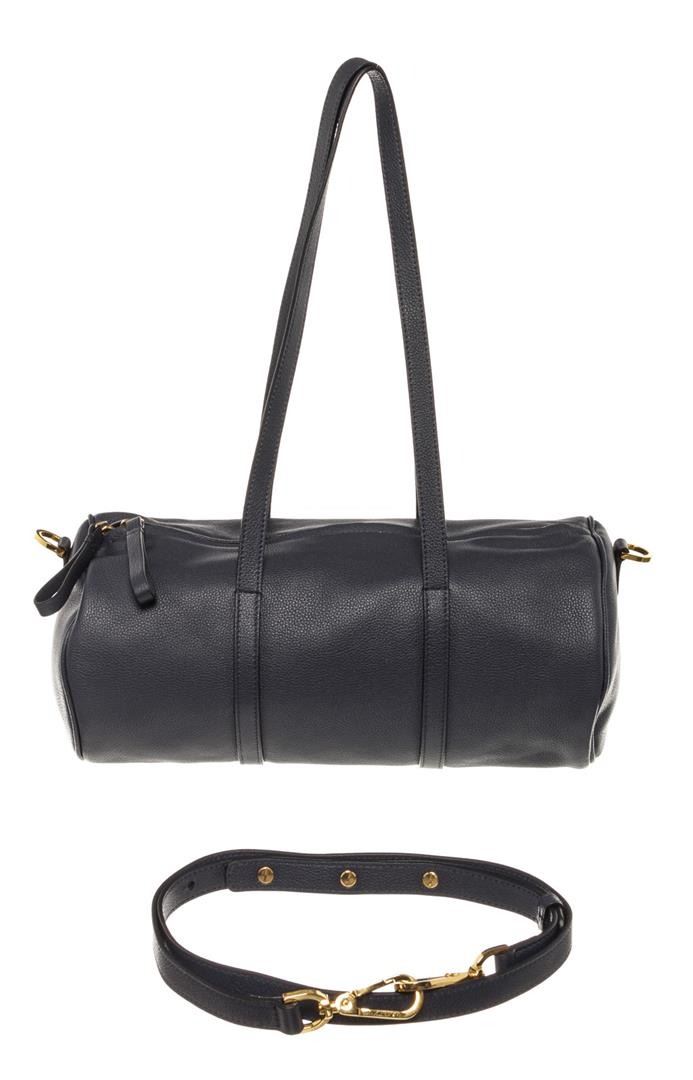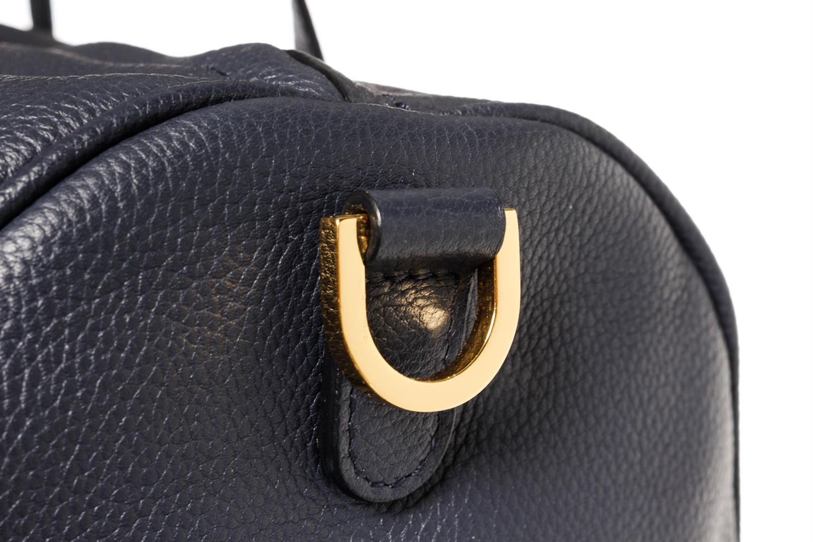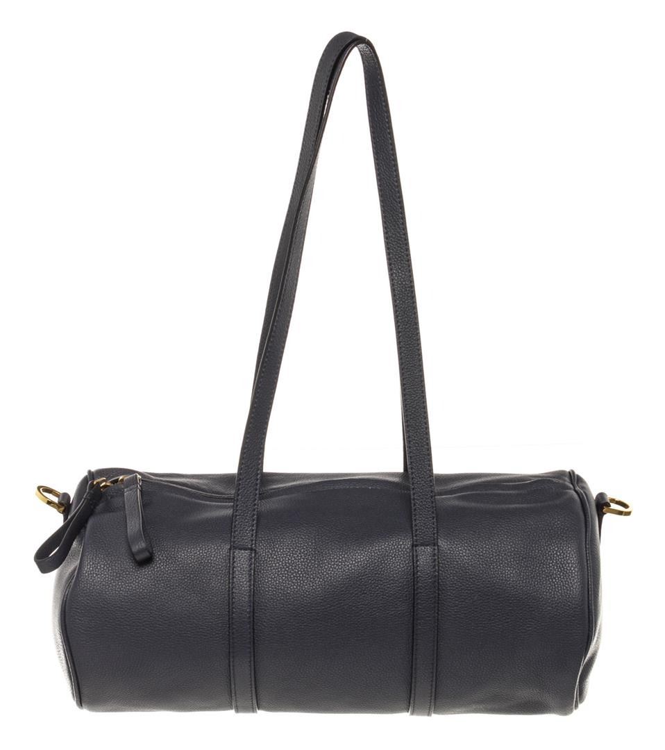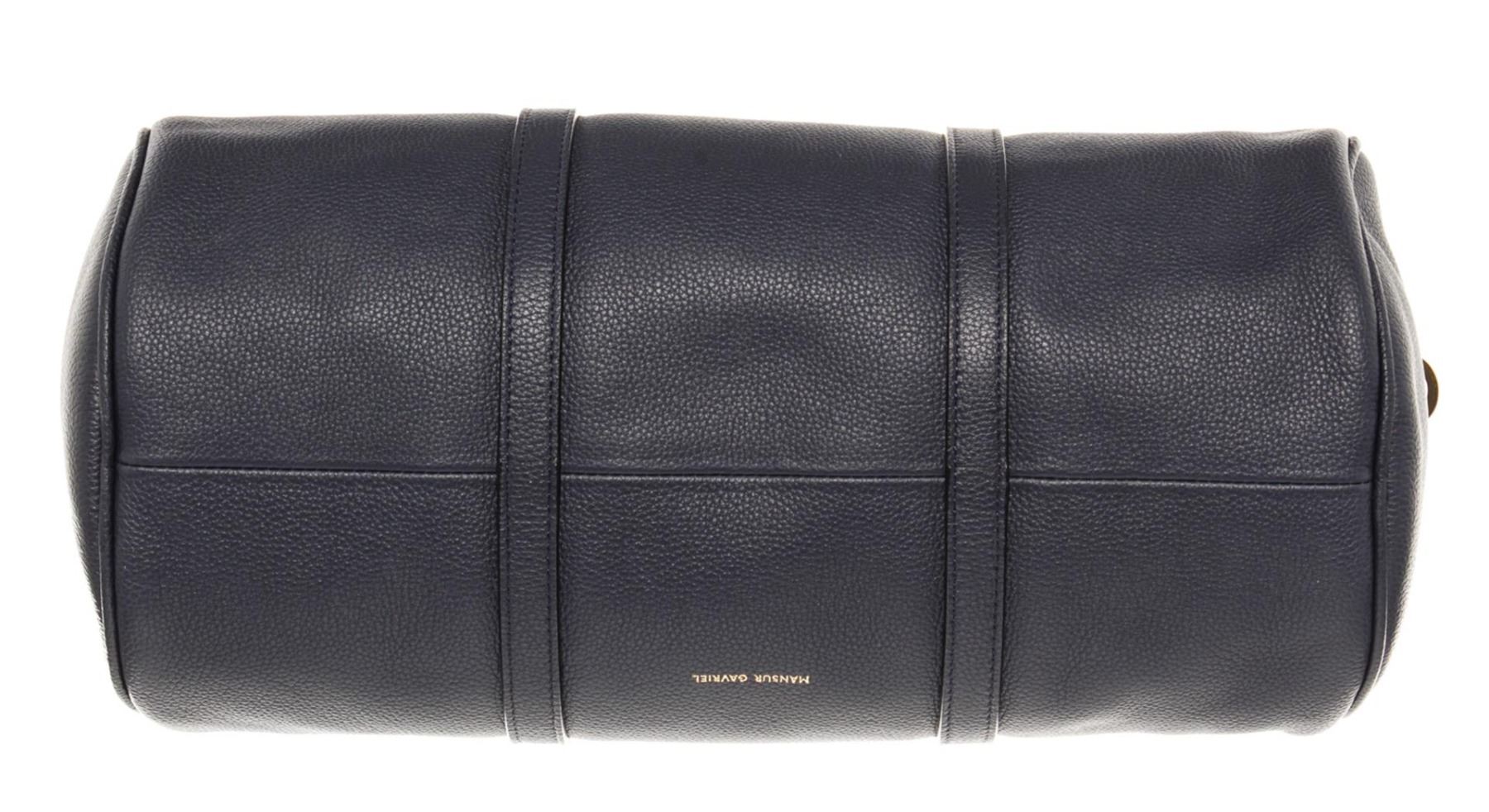 One Mansur Gavriel Navy Blue Lambskin Leather Mini Duffle Crossbody Bag. Item is sold AS-IS. All available information is listed in the description and shown in the photo. Mansur Gavriel Mini Duffle crossbody bag is crafted in navy blue Lambskin leather, gold-tone hardware, a long adjustable long leather strap that can be detachable, two top flat handles, two-way zip closure at top and black leather 8.5" L x 4" W x 4" H, Handle Drop: 5", Shoulder Strap Drop: 21.5"