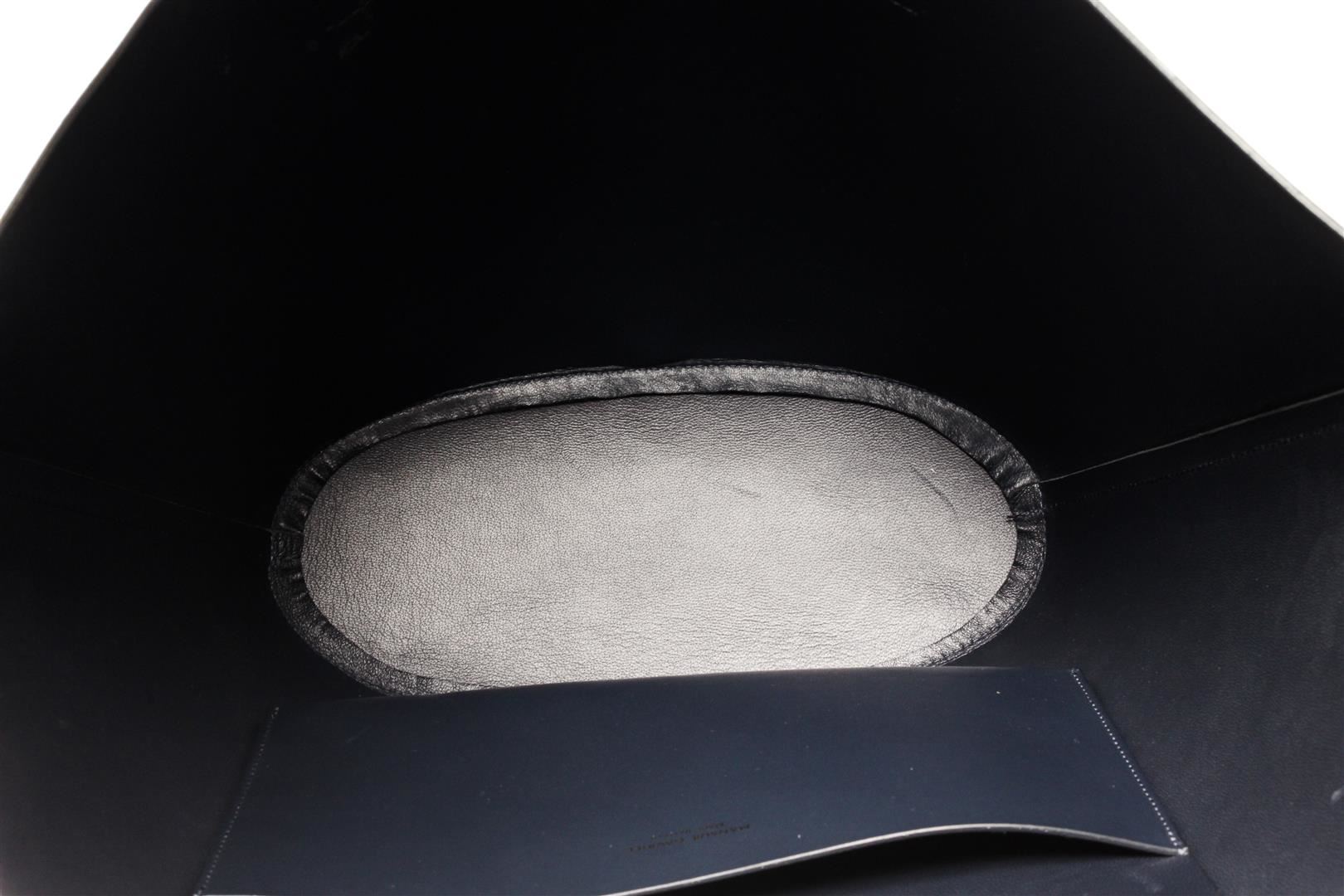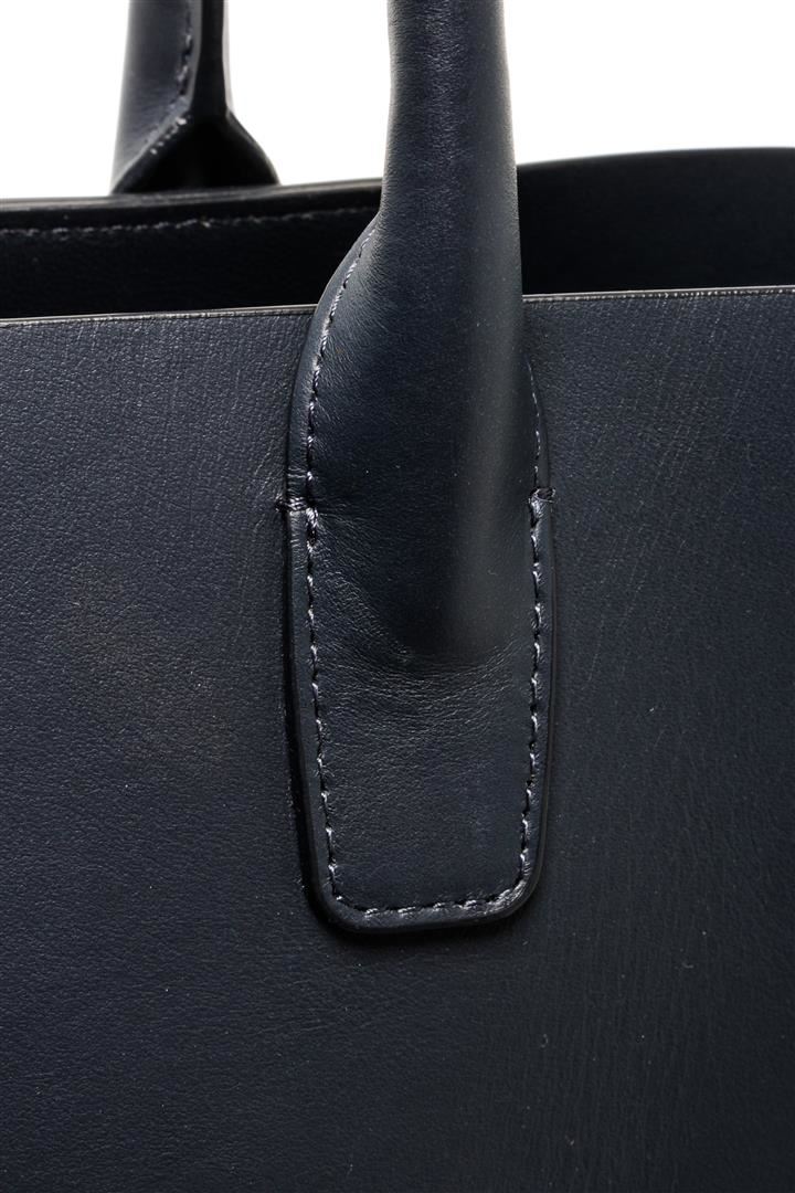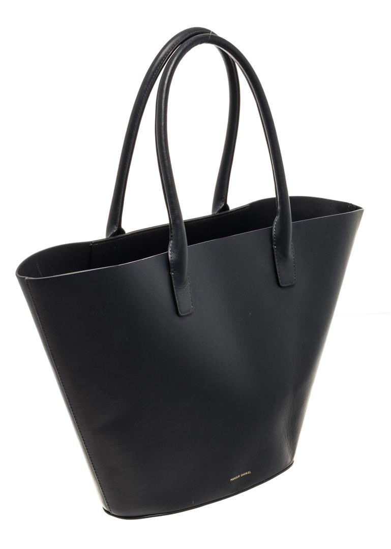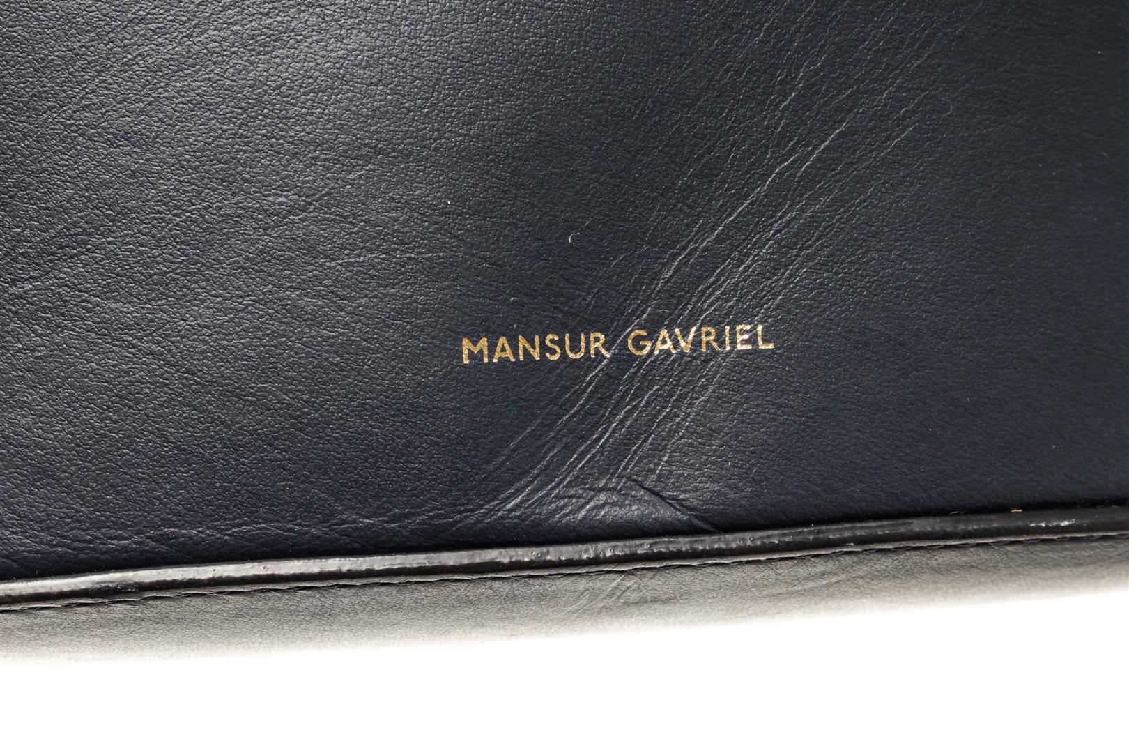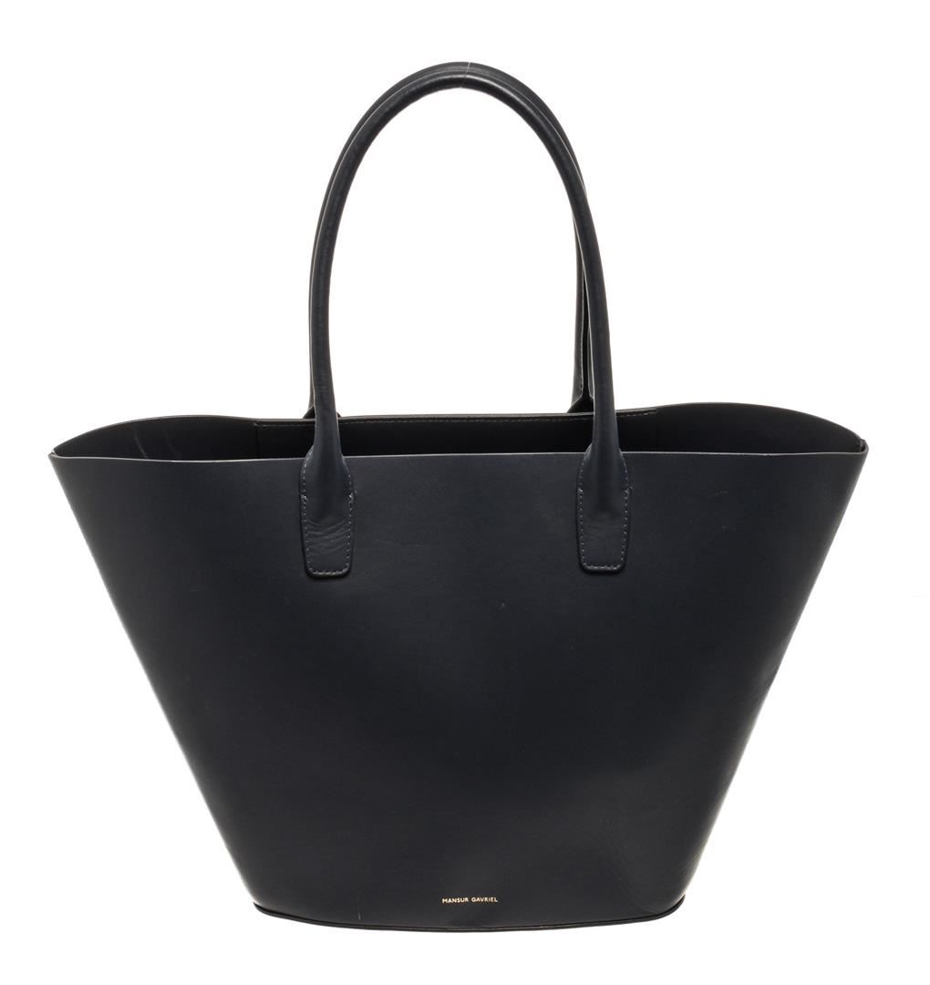 Mansur Gavriel Navy Blue Leather Triangle Handbag. All available information is listed in the description and shown in the photos. Mansur Gavriel Navy Blue Leather Triangle Handbag with Red Leather Interior, Inside Slip Pocket, Dual Leather Top Handles, and an Open Top. .