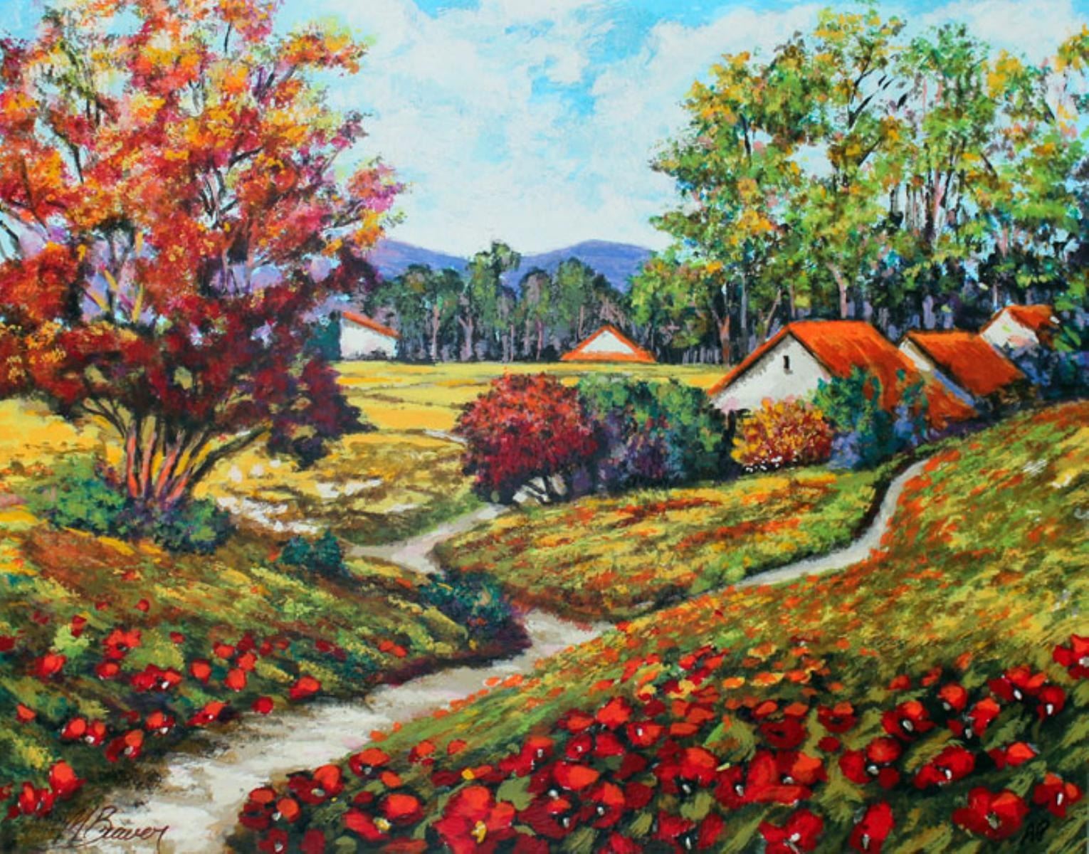 Artist: Mark Braver - Title: Red Poppies - Medium: Serigraph on Fine Art Paper - Signature: Hand-signed by the Artist - Limited Edition: 490 - Image Size: Approximately 12.5 inches x 16 inches - Paper Size: Approximately 14 inches x 17.5 inches - Unframed - Details: This work comes with a Certificate of Authenticity - Mark Braver's Artwork Is Unique In Its Vivid Colors And Special Textures. His Compositions Come To Life On The Canvas In An Abundance Of Colors While His Unique Layering And Texturing Techniques Lend The Paintings An Unusual Quality.