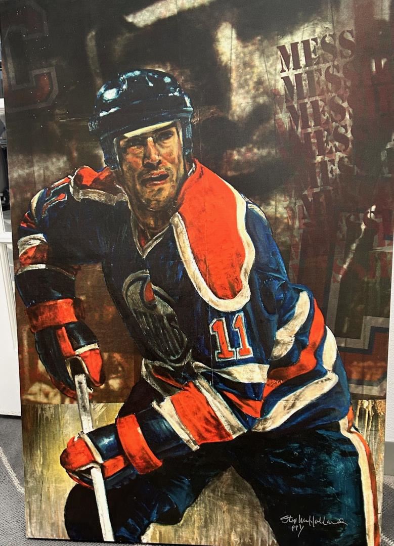 Stephen Holland captures Oilers star Mark Messier in this 44x30" giclee on stretched canvas. Some small spots on surface . w/COA