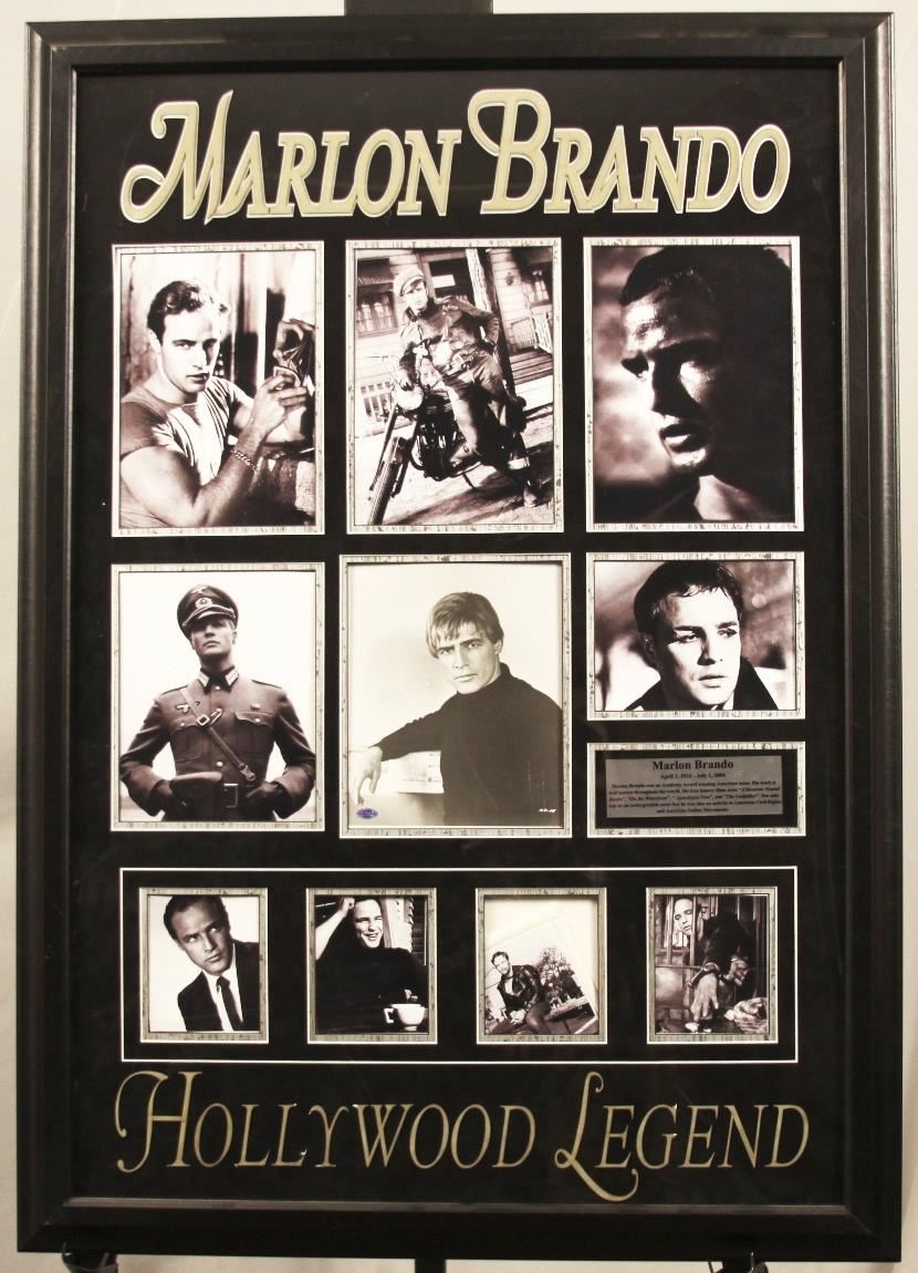 This framed collage features numerous photographs of Marlon Brando including one portrait that is autographed by the Hollywood legend himself! Comes with a certificate of authenticity.