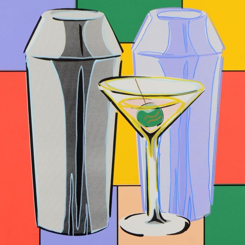 "Martini" is a hand embellished limited edition hand pulled silkscreen on canvas by Andy Warhol protege Steve Kaufman (1960-2010). This piece is numbered 17/50 and hand signed inverso. Includes letter of authenticity. Measures approx. 24" x 24" (image).