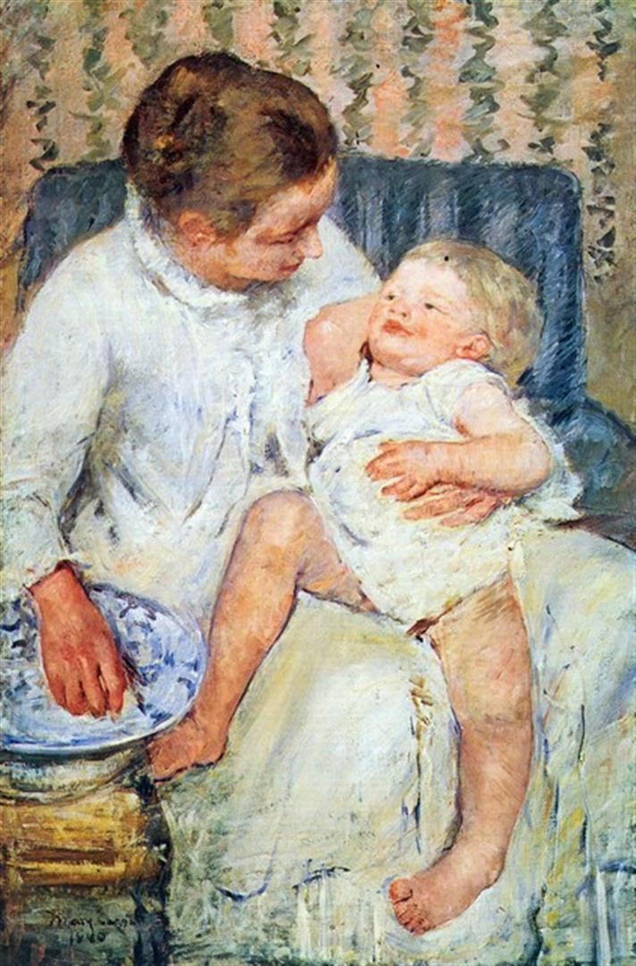 Artist: Mary Stevenson Cassatt (b. 1844 - 1926) Title: Mother Washing The Tired Child Medium: Fine Art Reproduction Giclee on Canvas Image Size: Approximately 32 inches x 21 inches Unframed on Unstretched Canvas Birography: Born on May 22, 1844, in Allegheny City, Pennsylvania, Mary Cassatt was one of the leading artists in the Impressionist movement of the later part of the 1800s. Moving to Paris, her home for the rest of her life, she was befriended by Edgar Degas. After 1910, her increasingly poor eyesight virtually put an end to her serious painting, and she died in 1926.